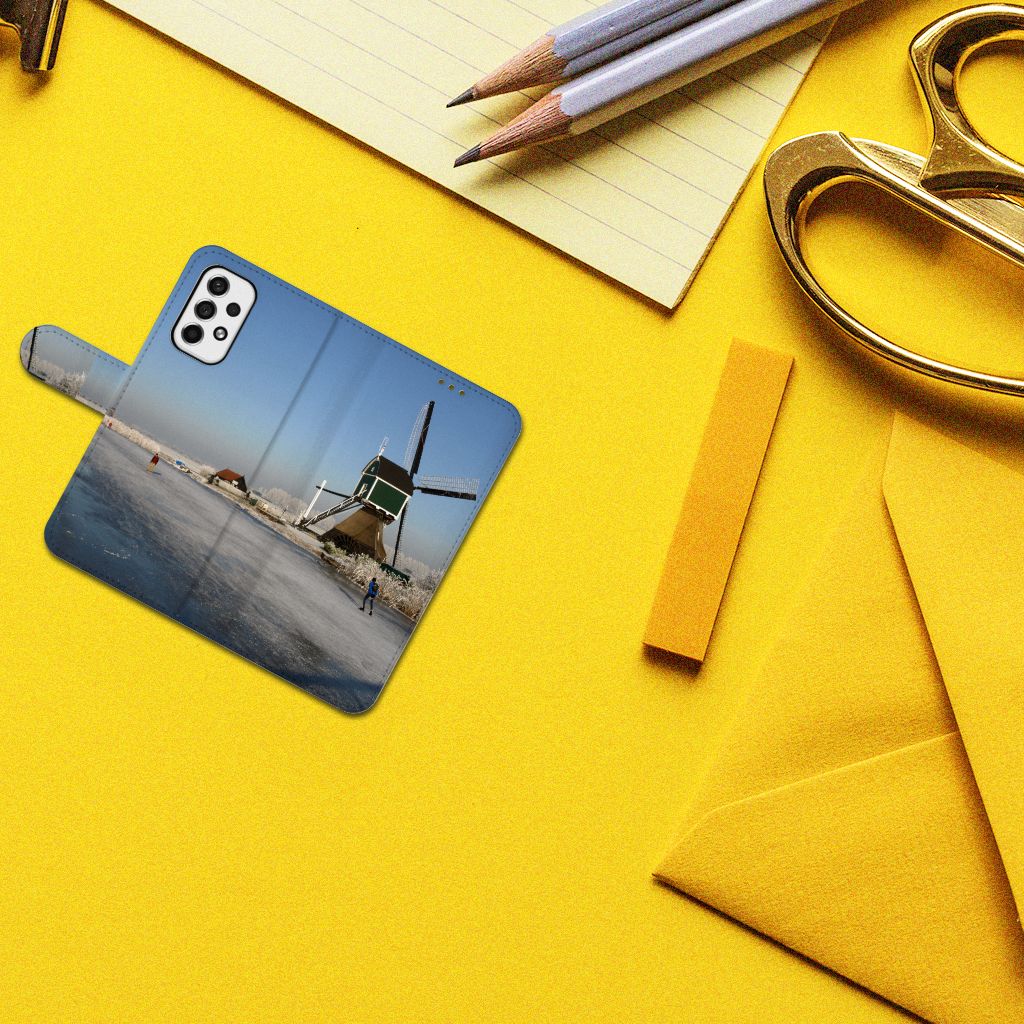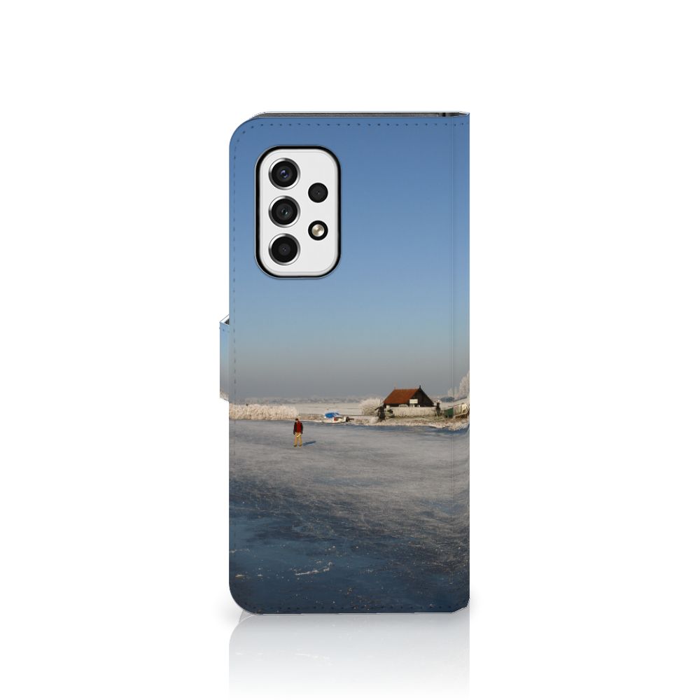 Dit mooie Samsung Galaxy A53 Flip Cover met schaatsers is een typisch Hollands product. Schaatsen is een van de oudste Nederlandse volkssporten en wordt van jongs af aan geleerd. Hoewel schaatsen ook in andere landen van het noordelijk halfrond in trek is, met name in Scandinavië (Zweden, Finland, Noorwegen), blinken Nederlanders er pas echt in uit. Mocht jij met dit hoesje met schaatsers in het buitenland aankomen zetten, dan is het meteen duidelijk waar je vandaan komt. Deze bookstyle case is perfect op maat gemaakt en heeft verschillende vakjes voor pasjes en briefgeld. Daarnaast is het magnetisch lipje aan de buitenkant zeer handig. Alle zijden van de case worden bedrukt met schaatsers en de houder aan de binnenzijde is van tpu. Dit is erg flexibel.