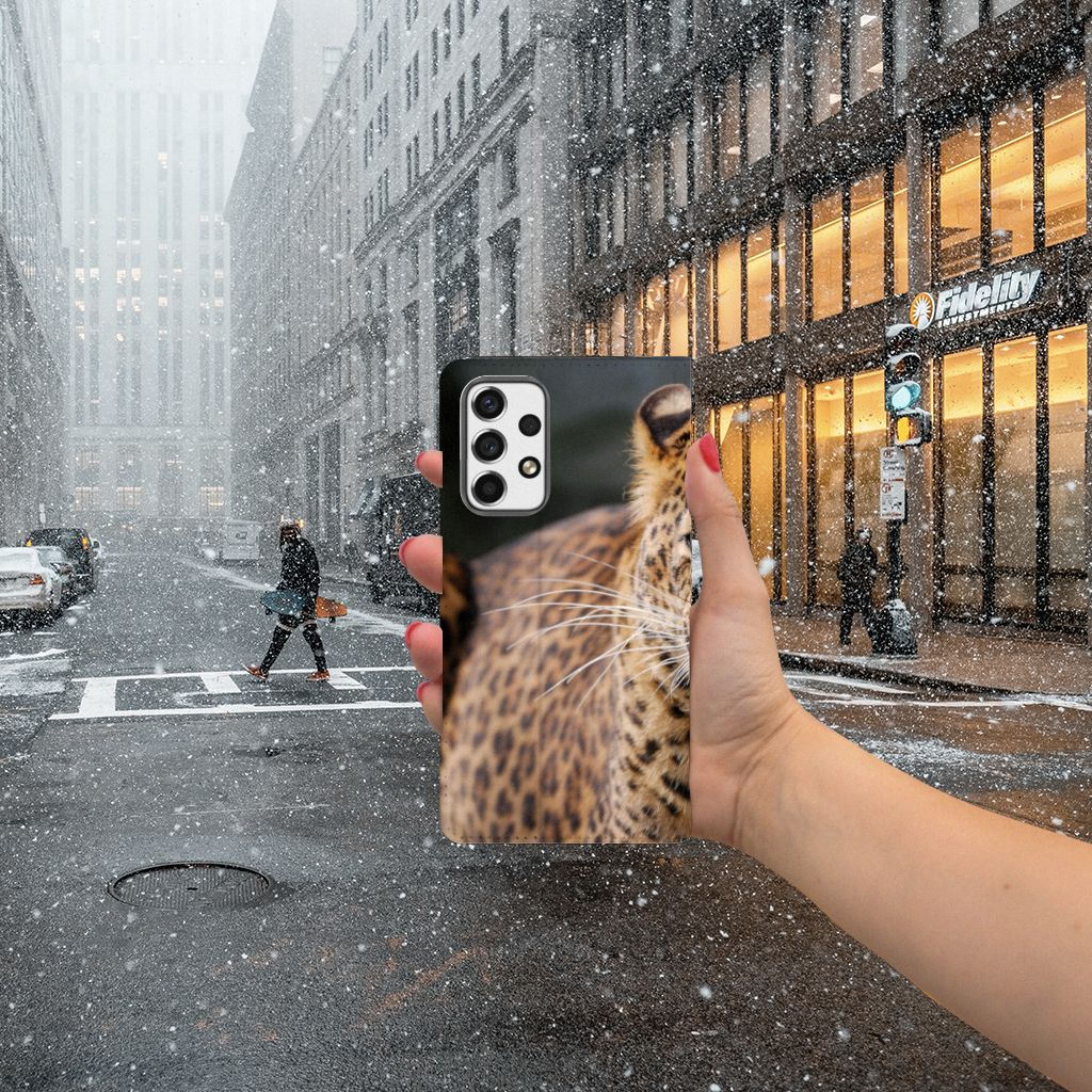 Het luipaard wordt ook wel een panter genoemd en is een sluwe kat. De bruingele vacht met een patroon van rozetachtige vlekken geeft een goede schutkleur. Dit zie je ook op een fraaie manier afgebeeld op dit super stoere hoesje. Mensen die indruk willen maken kopen deze stand case met design van het luipaard. Een Samsung Galaxy A53 Hoesje maken is van alle markten thuis. Het is praktisch – vanwege onder meer het opbergvakje en de magnetische sluiting aan de binnenzijde – maar beschermt jouw smartphone tevens beter dan welke case ook. Het luipaard is sterk en behendig en misschien typeert jou dat ook wel. Dan past dit hoesje met luipaard uitstekend bij jou. De houder van TPU aan de binnenzijde is net zo sterk als het luipaard. Jouw telefoon is perfect beschermd. De case heeft tevens een standaard.