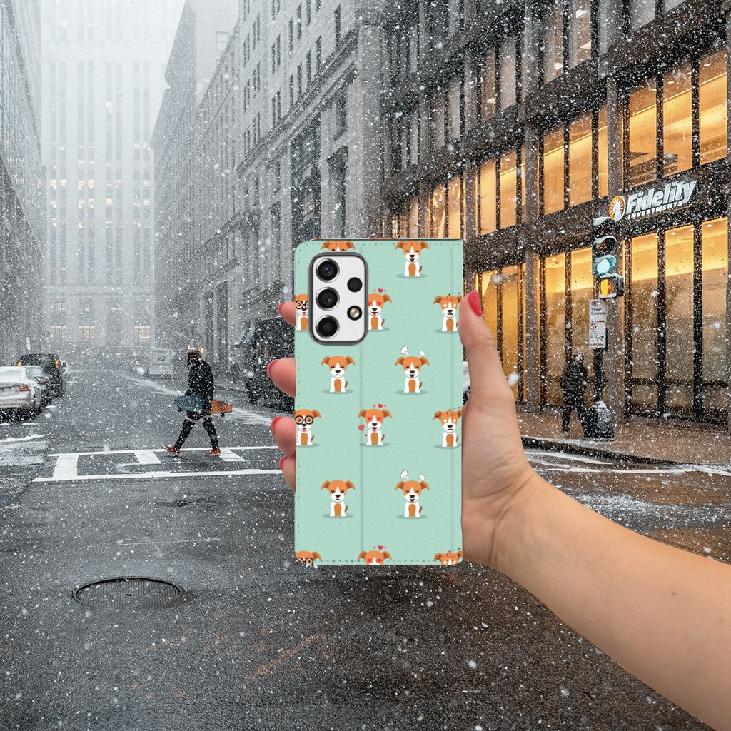 Ben je op zoek naar een uniek telefoonhoesje voor je Samsung Galaxy A53? Dan ben je bij B2C Telecom aan het juiste adres! Speciaal voor jou hebben we dit prachtige Pups design in onze collectie hoesjes opgenomen. Het design wordt bedrukt op een Hoesje maken en heeft een vakje aan de binnenkant voor een pasje. Het fijne aan dit hoesje is dat je het als standaard neer kunt zetten. Hierdoor geniet je nog meer als je een filmpje aan het kijken bent op je telefoon. Het hoesje wordt afgesloten door magneten aan de binnenkant. Wil je dit design hoesje nog iets extra's geven? Voeg dan gratis je naam of een quote toe! Is dit design hoesje toch niet helemaal wat je zocht? Ontwerp dan zelf een hoesje in ons ontwerpprogramma.