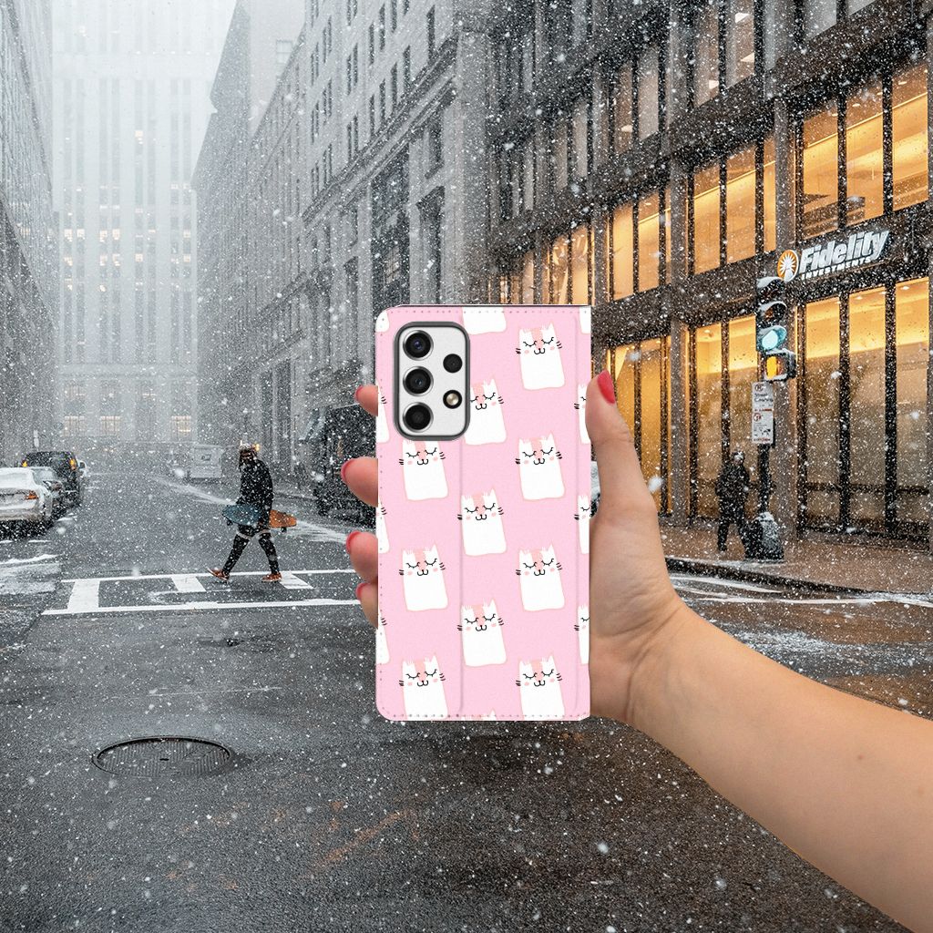 Heb je zelf een kat, dan zou je een hoesje kunnen ontwerpen met daarop je favoriete huisdier. Maar je zou ook kunnen kiezen voor een Samsung Galaxy A53 Hoesje maken met Sleeping Cats design. Na een jaar of tien kan een kat als bejaard worden beschouwd, maar dat geldt zeker niet voor dit smartphone hoesje. Dat is namelijk niet kapot te krijgen. De mooie roze kleur zal altijd scherp blijven en de slapende katten op dit hoesje zullen je altijd liefdevol aan blijven staren. Deze stevige case is niet alleen schattig, maar beschermt jouw telefoon ook zeer goed. Net als een kat zul jij spinnen bij de aanblik van dit telefoonhoesje. Deze stand case met slapende katten beschermt jouw telefoon aan alle kanten en beschikt over een 1 opbergvakje en een speciale standaard. Het hoesje wordt afgesloten met een magneet aan de binnenzijde. De houder aan de binnenzijde is van TPU.