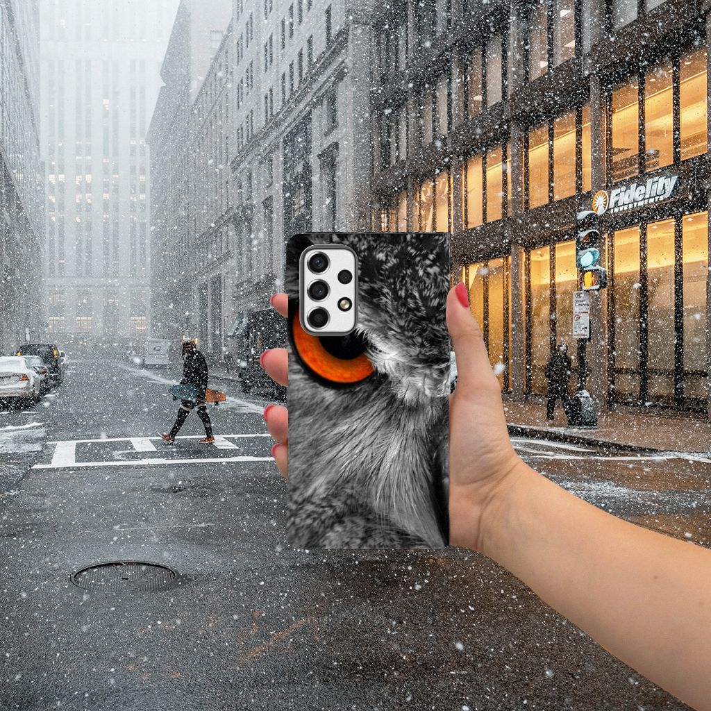 Deze Samsung Galaxy A53 Hoesje maken met uil is iets voor de nachtbrakers onder ons. De uil is bij uitstek een vogel die in de nachtelijke uren actief is. Ben jij ook iemand die dan tot leven komt, dan is deze stand case met uil echt iets voor jou. Als je tot in de late uurtjes op stap bent, komt het goed uit dat jouw smartphone aan alle kanten goed is beschermd met deze stand case met uil. De case met uil heeft een magnetische sluiting aan de binnenkant, waardoor de hoes niet openklapt als die uit je handen valt. Jouw creditcard of pinpas heb je als het goed is veilig opgeborgen in het vakje aan de binnenzijde. De houder aan de binnenzijde van de case met print van uil is van het flexibele TPU. De wat stoerdere types hebben veel baat bij deze stand case met uilen in felle kleuren.