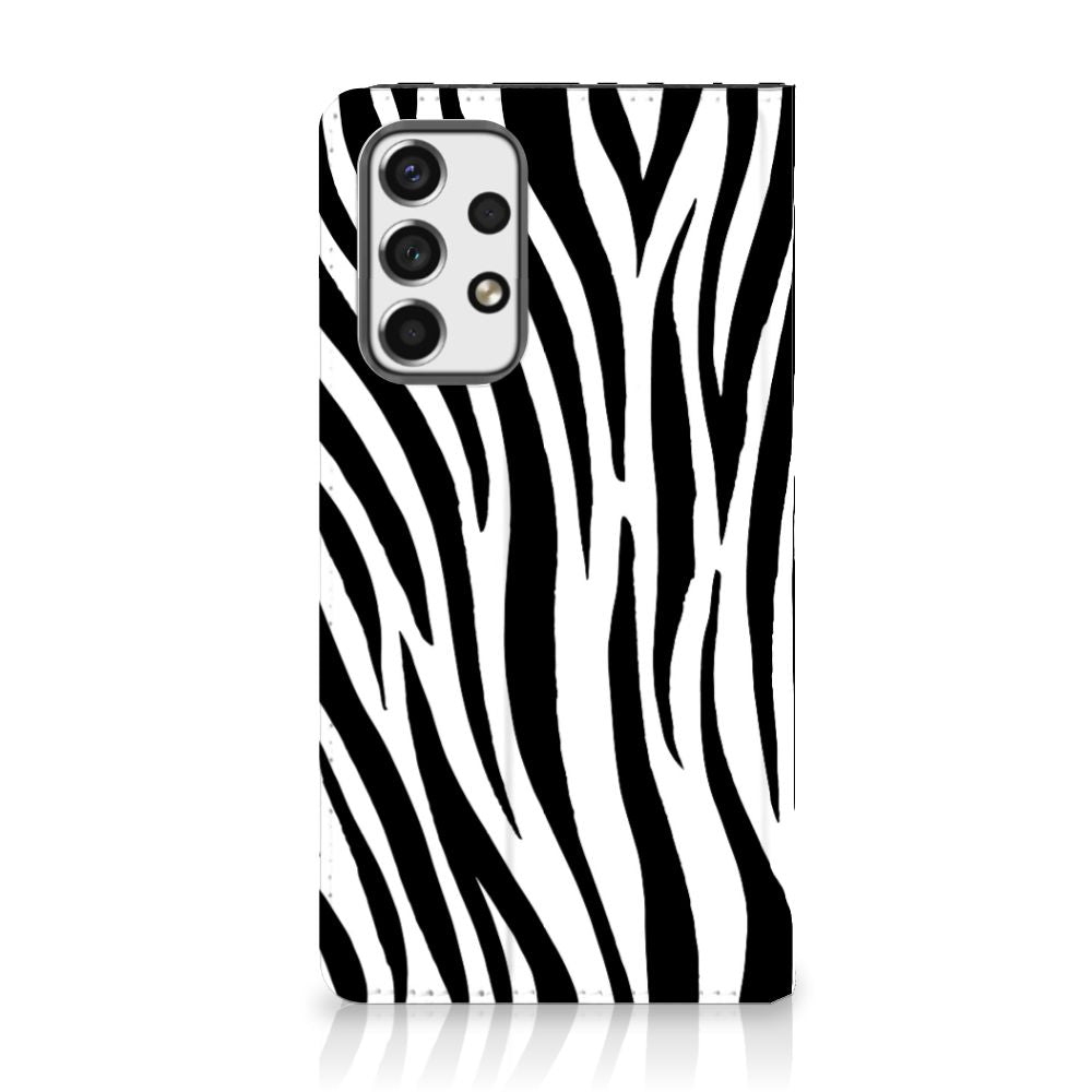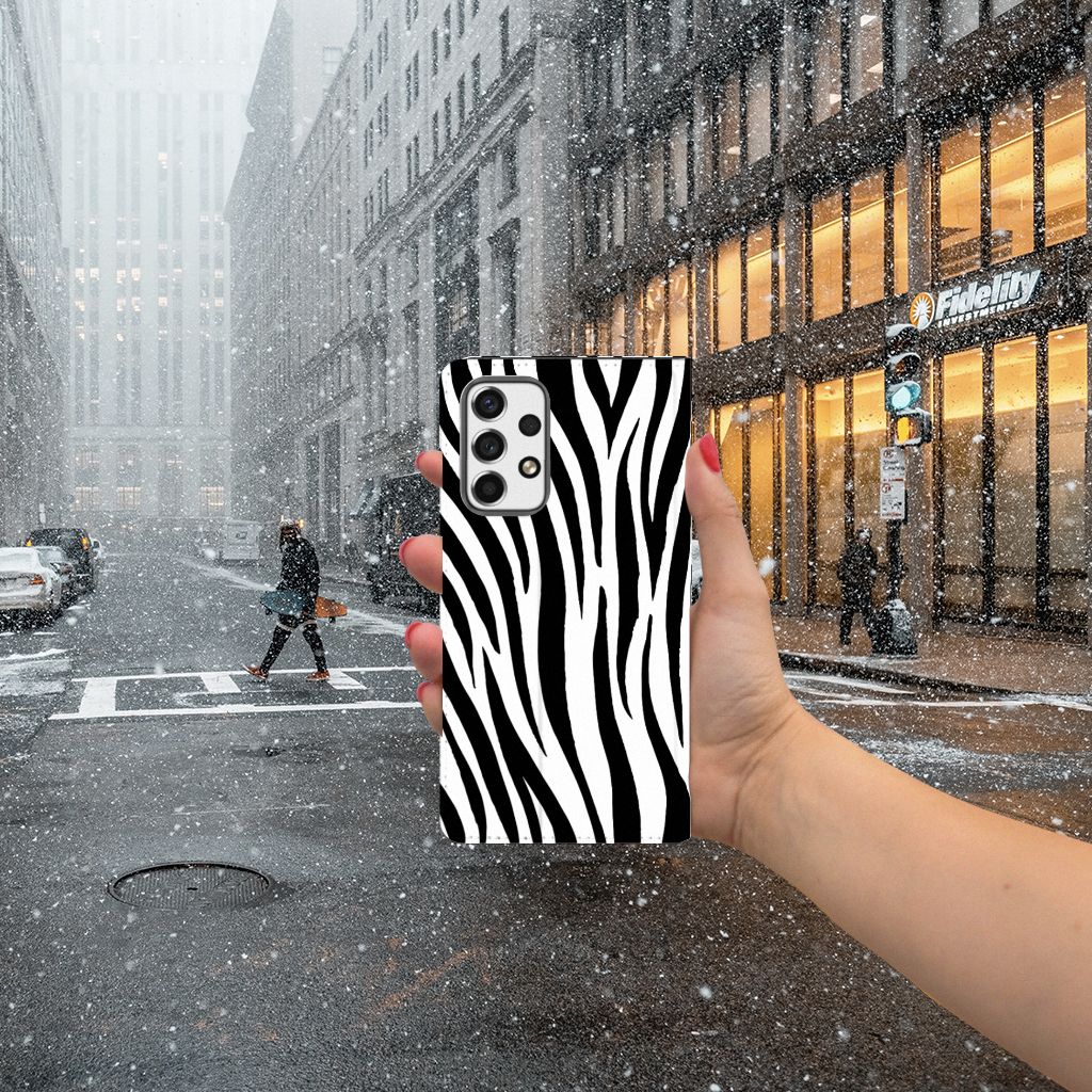 Deze Samsung Galaxy A53 Hoesje maken met zwart en witte zebra strepen kan exclusief in het bezit van jou komen. Zeker als je er zelf nog unieke teksten en/of beelden aan toevoegt van jezelf. Je hoesje krijgt dan een eigen identiteit, net zoals de witte en zwarte strepen uniek zijn bij iedere Zebra. Deze zijn te vergelijken met de vingerafdrukken bij de mens. De strepen en patronen zijn nooit identiek aan die van een andere zebra. Ben jij toe aan een unieke stand case? Pak dan dit design met zebra strepen als basis. Het stand hoesje is van PU-leer (buitenzijde) en TPU (binnenzijde) en beschikt over een houder voor pasjes en briefgeld. Verder is dit hoesje met zebra print voorzien van magneten aan de binnenzijde. Een zebra gebruikt de strepen ook om zich te camoufleren in de omgeving om zo uit het zicht te blijven van de roofdieren. Jij zorgt voor de perfecte bescherming van je smartphone met dit design hoesje in zebra kleuren.