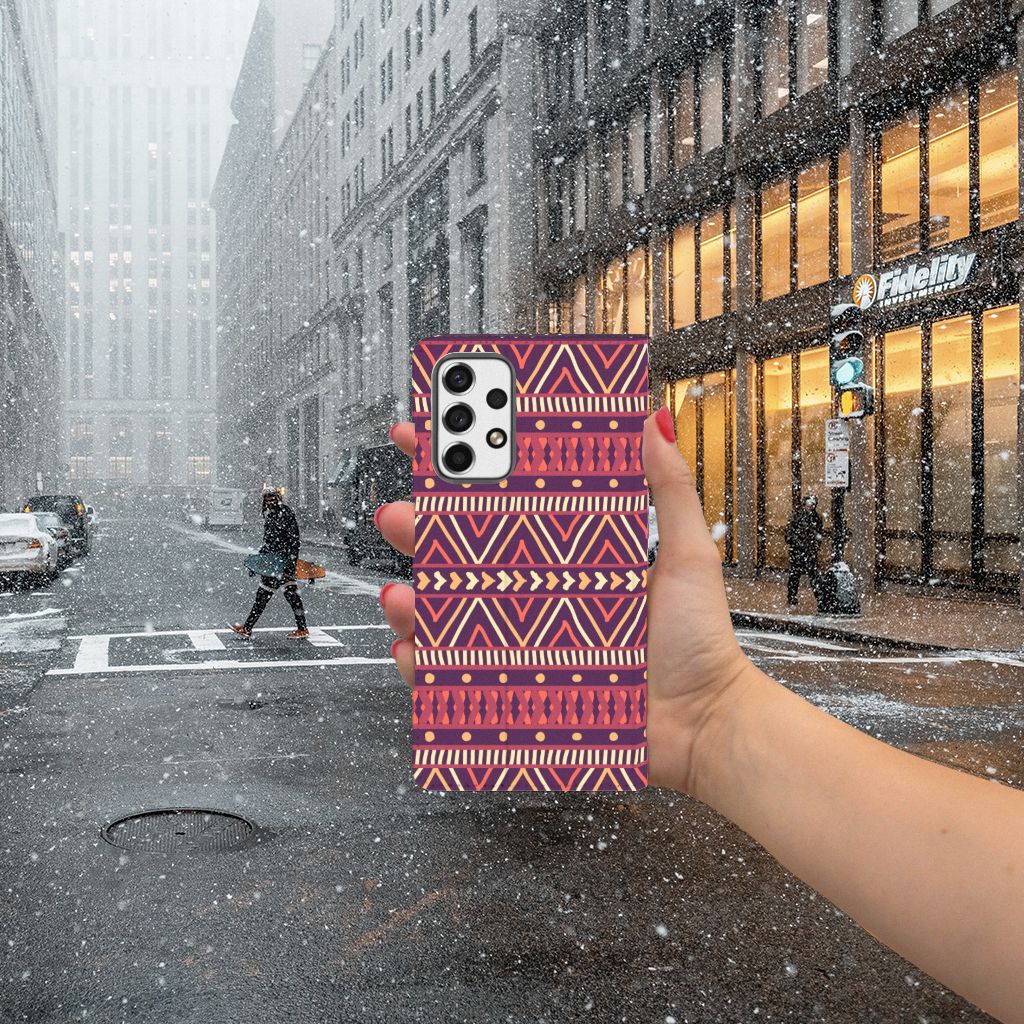 De Azteken leefden tussen 1200 en 1521 in het huidige Mexico. De mooie Aztec-patronen waar zij bekend om stonden, zien we nu nog op kleding, stoffen en tassen. Wie had toen kunnen bedenken dat we diezelfde prints honderden jaren later zelfs op een telefoonhoesje zouden vinden? Deze Hoesje met Magneet voor de Samsung Galaxy A53 is perfect voor iedereen die een stukje geschiedenis bij zich wil dragen maar ook gewoon een mooi en kleurrijk patroon op zijn hoesje wil. Dit populaire smartphonehoesje heeft één vakje en is aan alle zijden bedrukt met de Aztec Purple-print. Met de standcase zet je je telefoon gemakkelijk neer, zodat je je handen vrij hebt als je bijvoorbeeld filmpjes bekijkt.