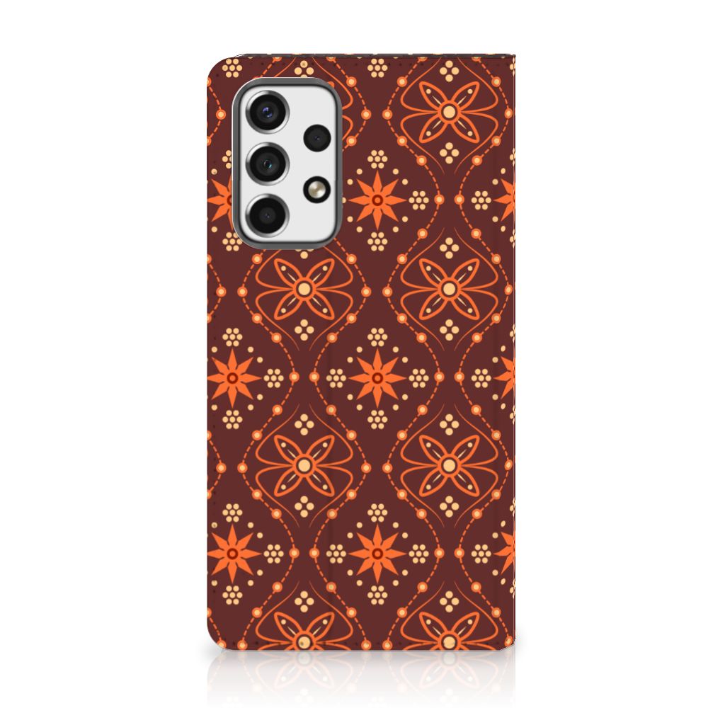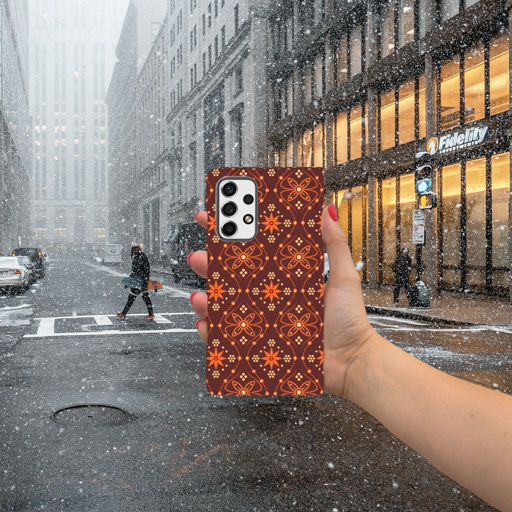 Batikken is een super oude kunstvorm. Met deze methode wordt een geweven stof met verf versierd. Er zijn zulke stoffen gevonden in het Midden-Oosten en Azië van meer dan tweeduizend jaar oud. Wie had kunnen bedenken dat we zo’n mooie batik-print duizenden jaren later zelfs op telefoonhoesjes zouden terugvinden? Dit Hoesje met Magneet in voor je Samsung Galaxy A53 heeft een prachtig symmetrisch patroon. Door de bruine en oranje kleuren doet het design een beetje retro aan en is het toch subtiel te noemen. Het hoesje heeft binnenin één vakje voor een pasje en een magnetische sluiting aan de binnenkant. Verder heeft de Batik brown-hoes een houder van TPU. Het leuke van een standcase is dat je hem eenvoudig neer kunt zetten. Zo heb je je handen vrij als je bijvoorbeeld een video wilt kijken op je smartphone.