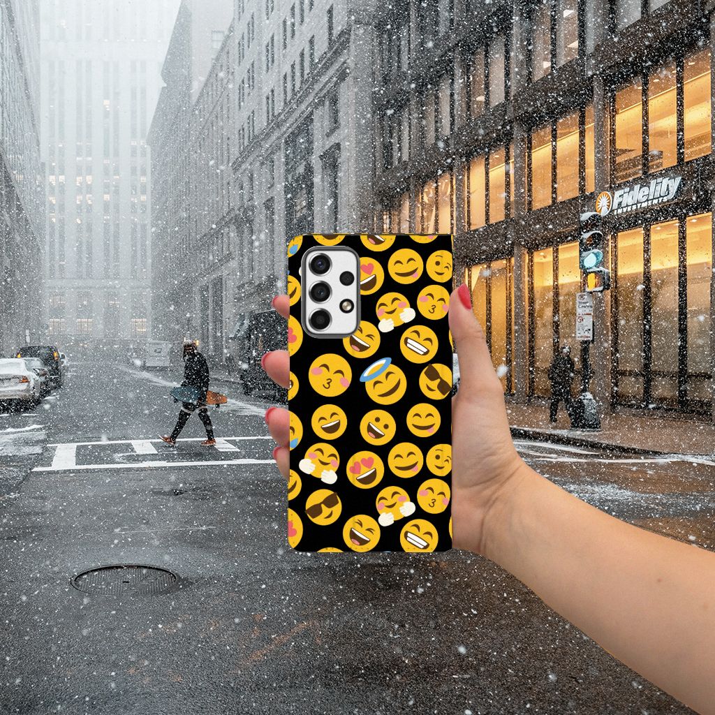 Je gebruikt ze waarschijnlijk dagelijks: emoji’s. Daarom hebben we besloten ze op een design hoesje te zetten. De kleurrijke, vaak gele emoticons maken chatberichten net wat spontaner. Dat hebben we allemaal te danken aan Japan, waar de emoji’s die we zo goed kennen vandaan komen. Ondertussen zijn er meer dan 1800! Deze passen natuurlijk niet allemaal op een Samsung Galaxy A53 Hoesje met Magneet, maar we hebben de meeste gebruikte exemplaren erop gezet. Deze stand case is voorzien van een houder voor een pasje. Super handig. De telefoon zelf zit in een houder van TPU, dat zeer flexibel is. We gebruiken emoji’s vaak om complete woorden te vervangen. Dit smartphone hoesje zegt dan ook meer dan duizend woorden kunnen. De stand case heeft een magnetische sluiting aan de binnenzijde en wordt aan alle kanten bedrukt met emoji’s. Tevens is er een standaard.