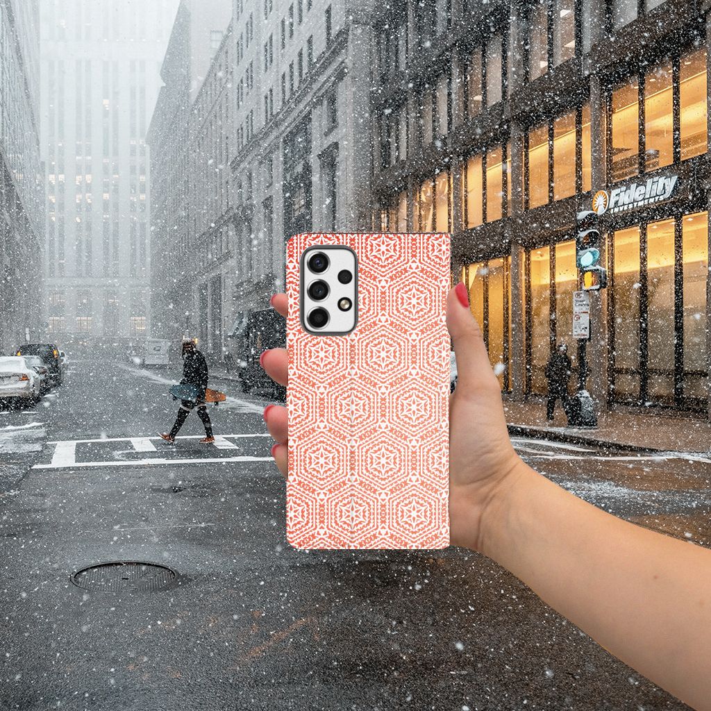 Deze Samsung Galaxy A53 Hoesje met Magneet met Pattern Orange vind je in geen enkel andere winkel of webshop. Heb je het eenmaal in je bezit, dan wil waarschijnlijk nooit meer een ander smartphone hoesje meer. Het design met oranje en wit patroon is bijzonder smaakvol en op maat gemaakt voor jouw smartphone. Dat is de kracht van het hoesje. Met dit design hoesje met oranje en wit patroon zal je ook heel erg opvallen. Dit is voor veel smartphone gebruikers een belangrijk voordeel. Dit zeer populaire smartphone hoesje heeft 1 vakje en is aan alle zijden bedrukt. Verder heeft de case een standaard en een magneet aan de binnenkant. Het oranje patroon staat op deze stand case erg goed. De houder is van TPU, de buitenzijde van PU-leer.