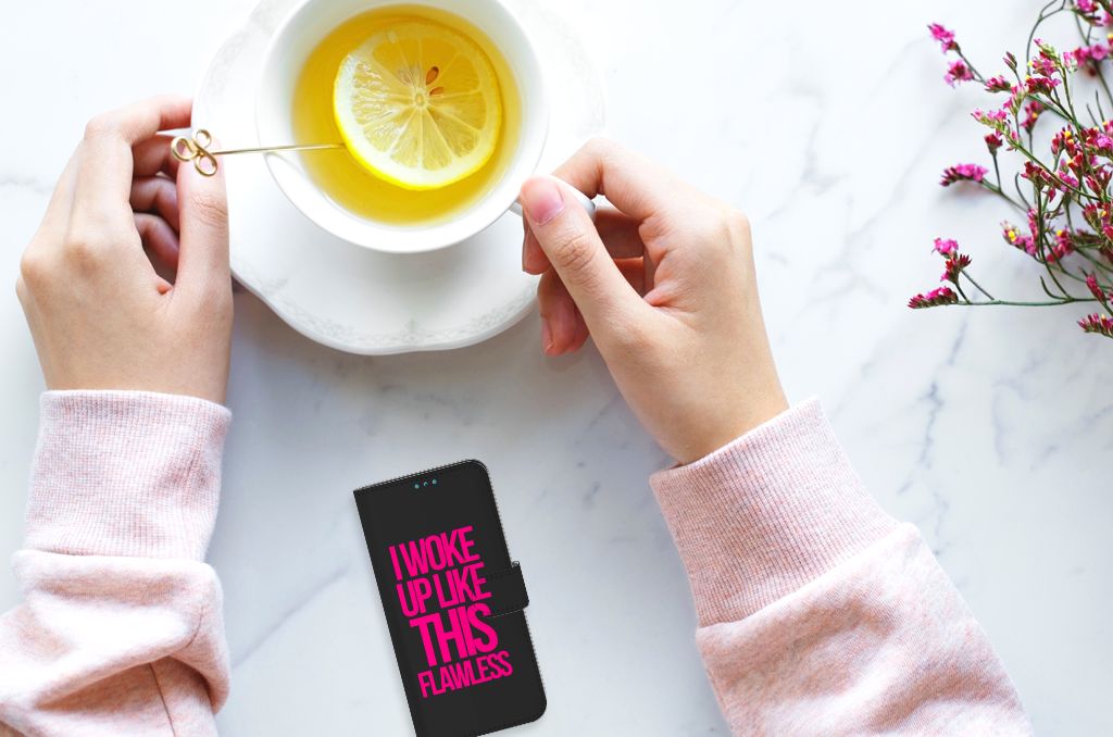 Met dit zwarte Samsung Galaxy A53 Hoesje met naam met paarse tekst heb je een geweldige bescherming van je smartphone in handen. Dit zwarte hoesje met Woke Up tekst is een must voor jouw smartphone. Met dit design hoesje tekst val je ook zeker op. Je weet ook zeker dat het hoesje exclusief is. Het design is gemaakt door B2C Telecom. Het hoesje heeft verschillende vakjes en is aan alle zijden bedrukt. Ook het lipje aan de buitenkant kan worden bedrukt. De houder is van TPU, de buitenzijde van PU-leer. We willen je er ook op wijzen dat je zelf een hoesje kunt ontwerpen, met eigen beelden en teksten. Met onze Phone Case Designer kun je zelfs opvallende effecten, patronen en clip arts aan het ontwerp toevoegen.