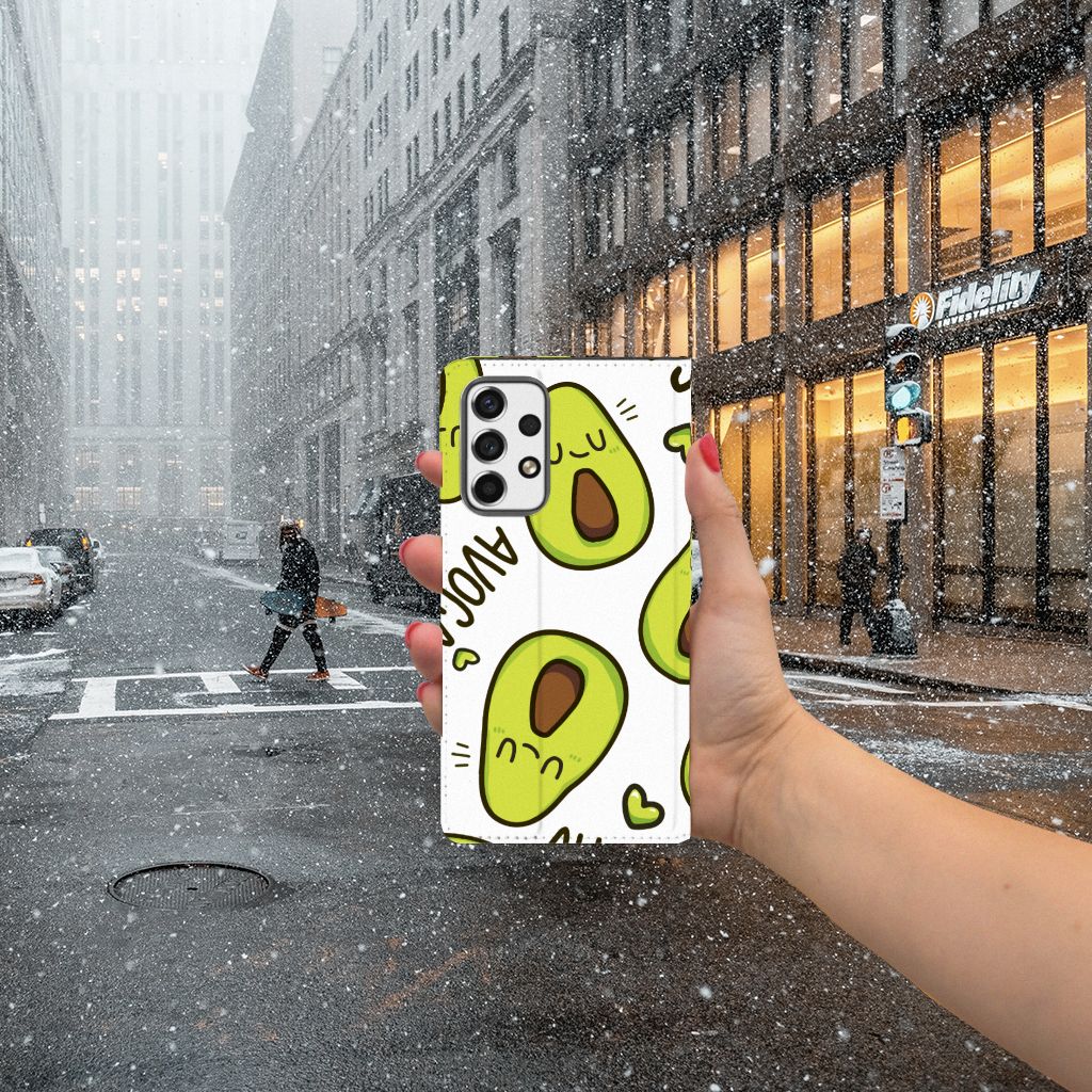 Avocado’s zijn niet alleen heel erg goed voor je, ze zijn ook super leuk op je telefoonhoesje. Dit unieke design vol schattige avocado’s zal jou en iedereen om je heen meteen opvrolijken. Nog een voordeel van dit design: deze avocado’s bederven nooit! Dit leuke Avocado Singing-ontwerp staat op een Magnet Case voor de Samsung Galaxy A53. Dit populaire smartphonehoesje heeft één vakje en is aan alle zijden bedrukt. Met de standcase zet je je telefoon gemakkelijk neer, zodat je je handen vrij hebt als je bijvoorbeeld filmpjes bekijkt. De binnenkant van de standcase is van grijs PU-leer. Dat is ideaal, omdat je daardoor niet snel vlekken ziet op je hoesje.