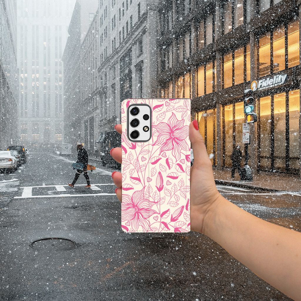 Deze mooie Samsung Galaxy A53 Smart Cover met Pink Flowers is een geweldige en duurzame bescherming voor jouw smartphone. De roze kleuren zijn zeer subtiel op het hoesje gezet en worden op alle zijden van de case bedrukt. Dit printen doen we in eigen beheer, zodat de roze bloemen ook uitstekend tot zijn recht komen op de stand case. Het smartphone hoesje met bloemen is een perfect cadeau voor jouw beste vriendin! Een stand hoesje is perfect op maat gemaakt en heeft een vakje voor een pasje. Daarnaast is de magneet aan de binnenkant zeer veilig. De case sluit perfect af. De houder aan de binnenzijde is van tpu. Ook de standaard aan de buitenzijde wordt bedrukt als jij dat wilt. Nergens tref je een hoesje met roze bloemen aan dat zo goed past bij jouw smartphone.
