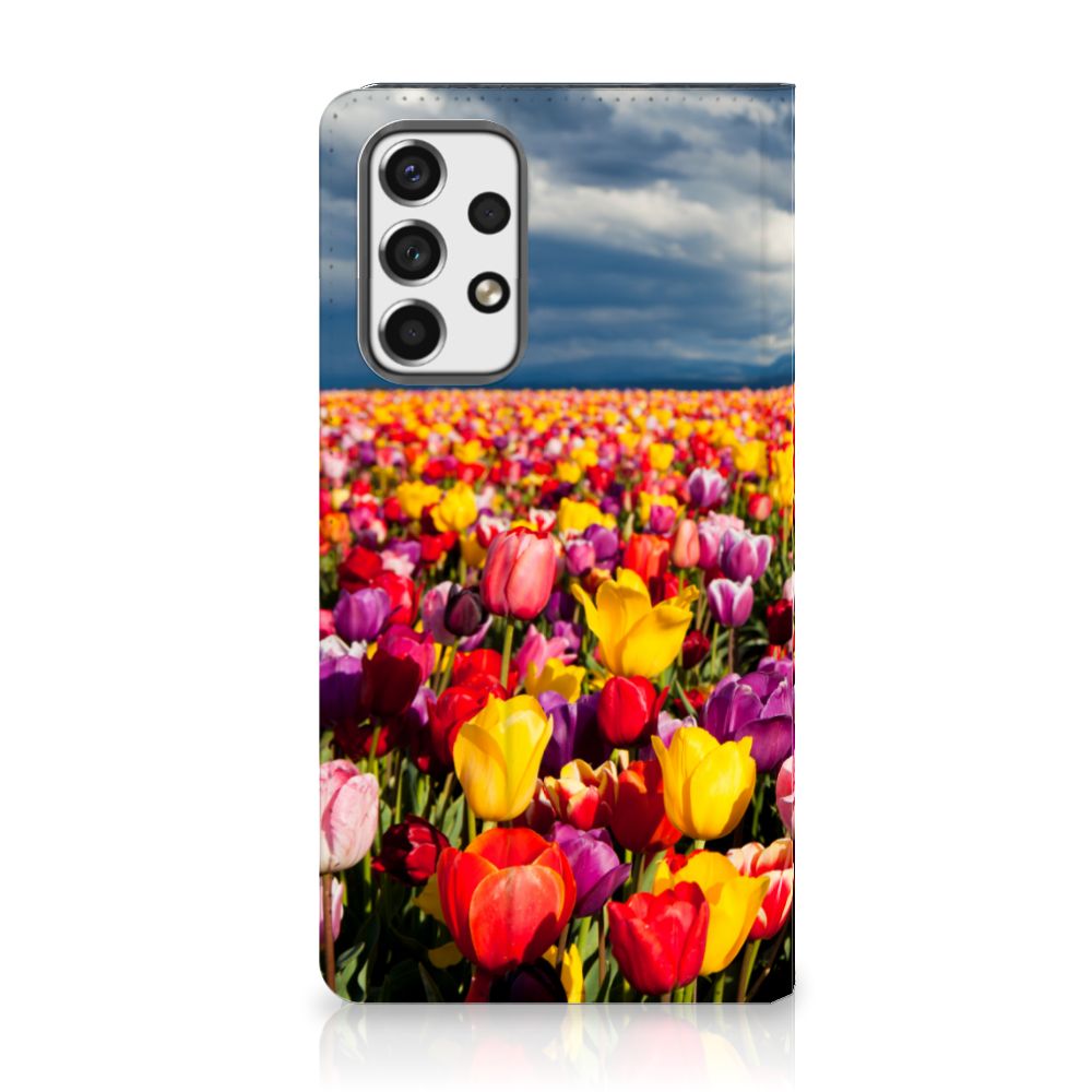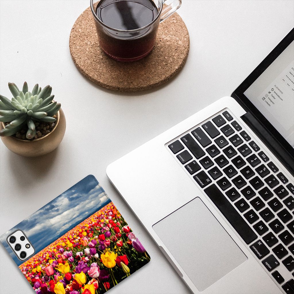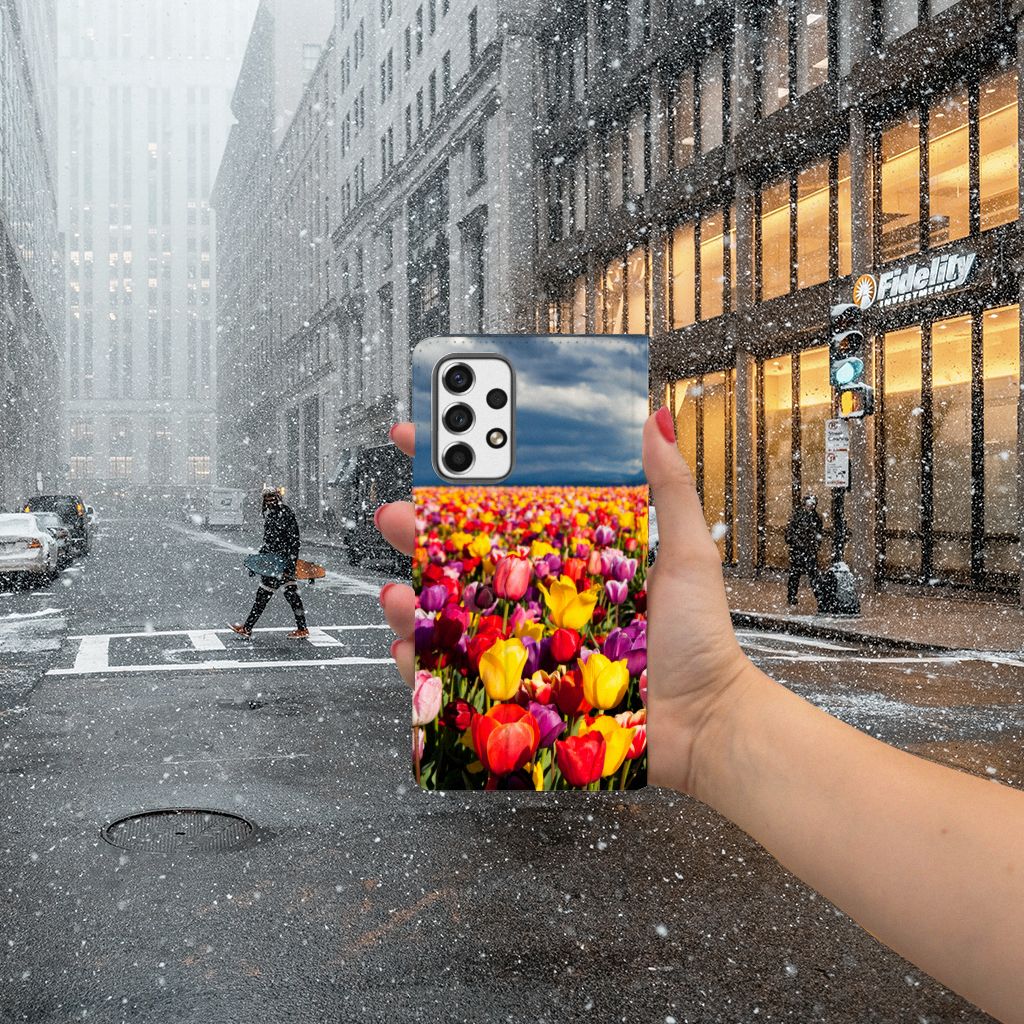 De tulp is een oer-Nederlandse bloem en heeft een lange geschiedenis. Deze Samsung Galaxy A53 Smart Cover met Tulpen ziet er bijzonder kleurrijk uit. Dit fleurige smartphone hoesje geeft een bijzondere bescherming van jouw apparaat. Tulpen zijn ideaal voor een kleurrijk begin van het tuinseizoen. Iedereen wordt er vrolijk van om te zien hoe deze bloemen het voorjaar kleur geven en het begin van de warmere tijd van het jaar aankondigen. Dan kan het toch niet anders of jij wordt heel erg blij van deze stand case met tulpen? Deze populaire stand case heeft ruimte voor een pasje of briefgeld aan de binnenzijde en wordt magnetisch afgesloten. De houder aan de binnenkant is van TPU en de case wordt aan alle zijden bedrukt met tulpen. Je kunt ook zelf een stand case maken met daarop jouw favoriete bloemen.