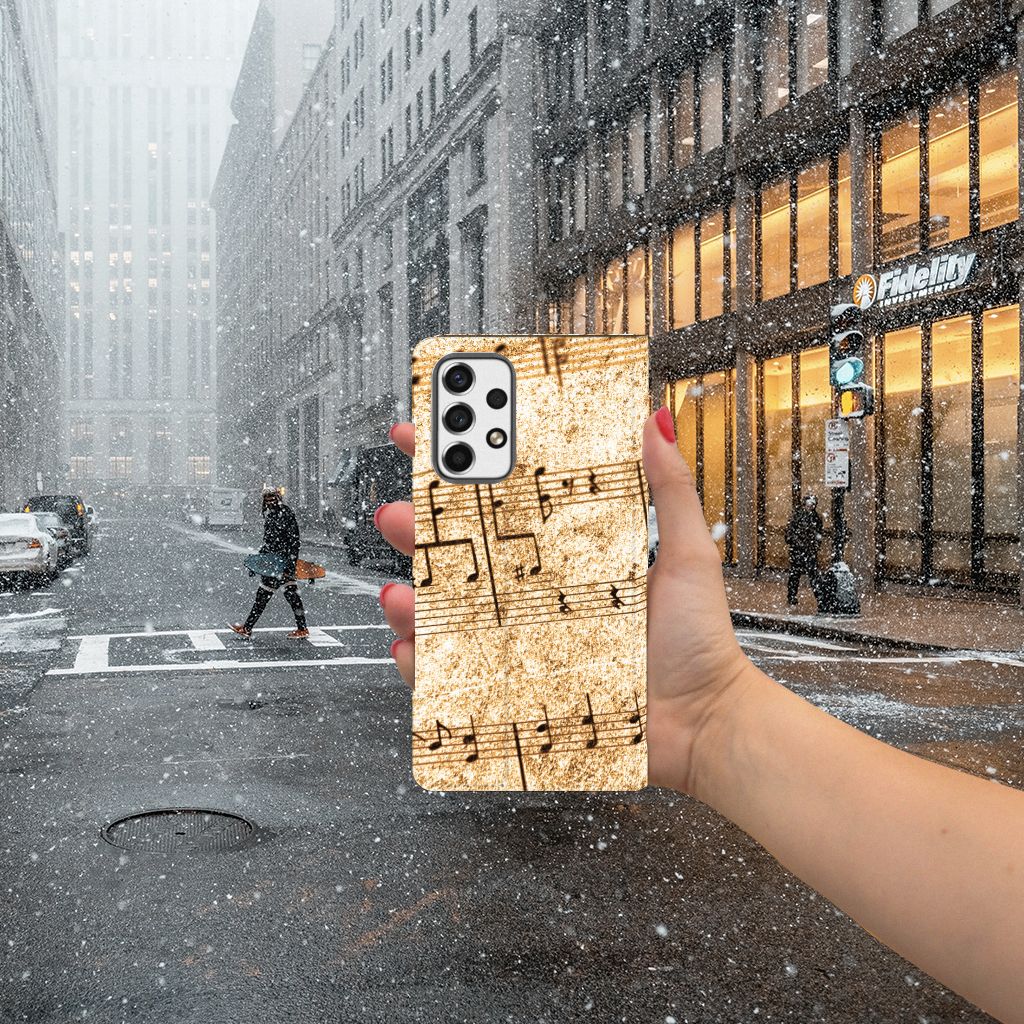 Ben je muzikant, dan is dit design hoesje met Bladmuziek wellicht echt iets voor jou. Met de intrede van nieuwe media wordt de rol van papieren bladmuziek teruggedrongen. Steeds vaker treft men 'bladmuziek' op een beeldschermapparaat, zoals een tablet-pc, e-reader of iPad aan. Gelukkig maar, want als er geen nieuwe media zouden zijn, hadden wij ook nooit onze Phone Case Designer kunnen ontwerpen. Met deze unieke ontwerpmodule kun je jouw favoriete band of artiest op je smartphone hoesje zetten, maar je kunt ook gaan voor dit prachtige design hoesje met print van bladmuziek. Het design staat op een Samsung Galaxy A53 Stand Case. Deze case beschermt jouw telefoon aan alle kanten en beschikt over een 1 opbergvakje en een speciale standaard. Het hoesje wordt afgesloten met een magneet aan de binnenzijde. De houder aan de binnenzijde is van TPU. Alle zijden van de stand case worden bedrukt.