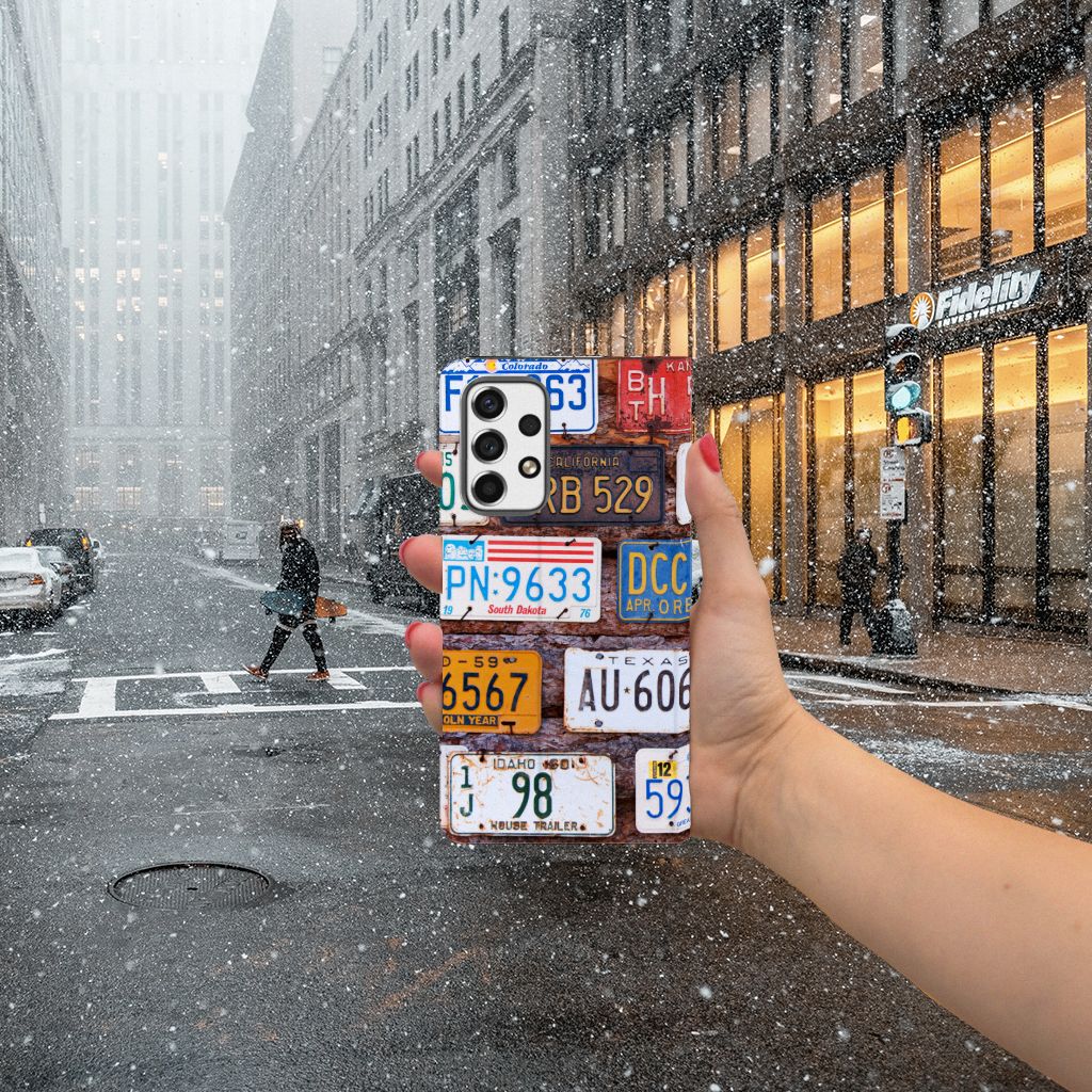 Je gaat waarschijnlijk helemaal uit je plaat met deze Samsung Galaxy A53 Stand Case met Amerikaanse Kentekenplaten. Kentekenplaten van Utah, Virginia, Nebraska, Kansas en Iowa: ze komen allemaal voorbij op deze opzienbarende stand case, te koop voor een zeer scherpe prijs. Behalve een hoes met een fraaie print van kentekenplaten krijg je ook een case met zeer veel praktische eigenschappen. Zoals een opbergvakje voor een pasje en briefgeld en een magneet aan de binnenzijde, die jouw telefoonhoesje met Amerikaanse kentekenplaten magnetisch afsluit. De case wordt aan alle zijden bedrukt en heeft een standaard. Jouw telefoon zit in een houder van TPU, die zeer flexibel is. Een betere bescherming dan deze stand case met Amerikaanse kentekenplaten is nauwelijks denkbaar.