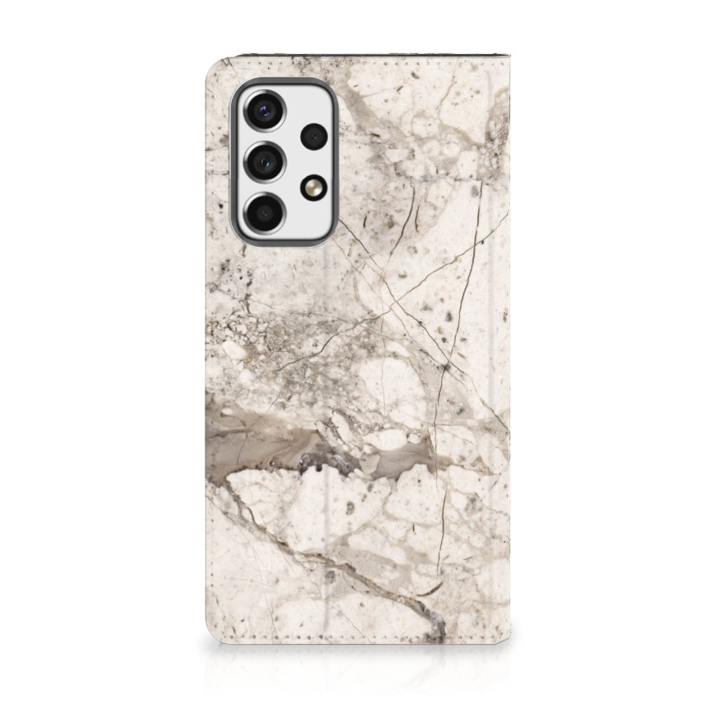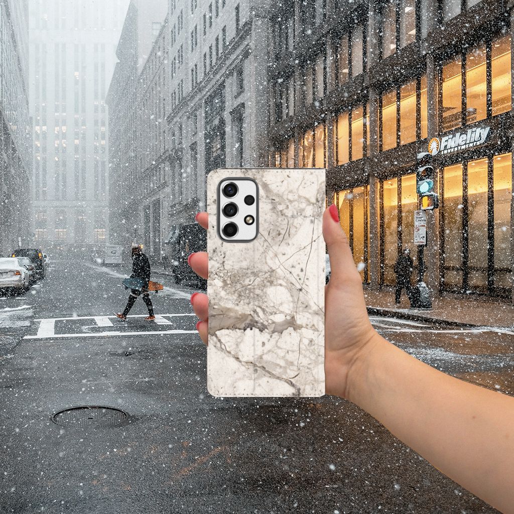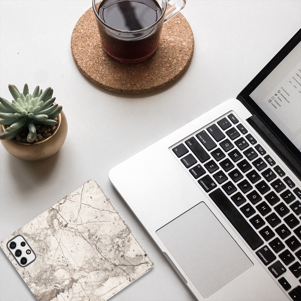 Dit design hoesje met Marmer Beige is voor de artistieke personen onder ons. De Grieken en Romeinen wisten het steen al te waarderen door het als bouw- en bekledingsmateriaal toe te passen. Naast het witte Carrara marmer met haar zacht grijze geaderde belijning zijn de diverse marmersoorten in een ruim kleurenpallet te krijgen. We hebben verschillende kleuren op design hoesjes gezet, zoals in dit geval beige marmer. Dit is een Samsung Galaxy A53 Standcase met marmer in beige kleur. Het marmer wordt bedrukt op alle zijden van een stand case, die beschikt over 1 vakje voor een pasje en toebehoren en een magnetische sluiting aan de binnenkant. Verder heeft de case een houder van TPU. De rijkheid aan kleuren en varianties in afwerking geeft designers de vrijheid om met marmer hele mooie architectonische projecten te realiseren. Wij hebben onze designer ook veel vrijheid gegeven. Het resultaat zie je terug in deze stand case met beige marmer, dat de ideale bescherming voor jouw smartphone biedt.