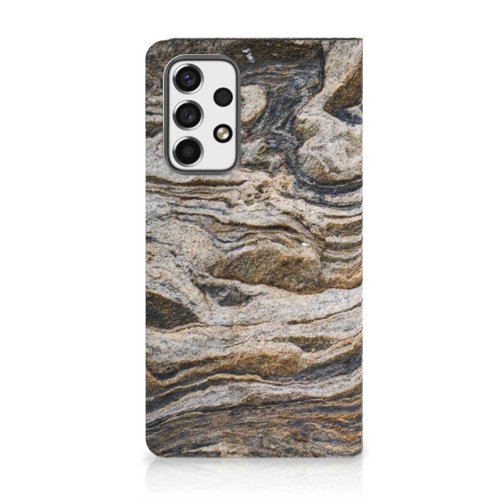 Deze Samsung Galaxy A53 Standcase is jouw rots in de branding. Het bruine rotsachtige steen maakt van jouw stand hoesje een echte eyecatcher. Een stand case is van zichzelf al zeer fraai om dit zien, maar met dit design wordt de smartphone pas echt een begerenswaardig apparaat. Het bruine rotsachtige steen wordt bedrukt op alle zijden van de stand case, die beschikt over een vakjes voor pasjes en toebehoren en een magnetische sluiting aan de binnenkant. Verder heeft de case een houder van TPU. Met steen kun je alle kanten op, dat bewijzen we met deze collectie design hoesjes. Onze designer heeft zich overtroffen met dit boekhoesje met structuur van steen.