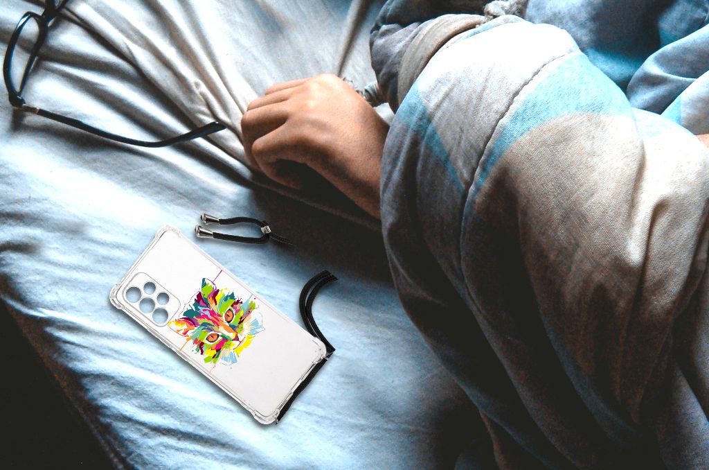 Ben je op zoek naar een uniek telefoonhoesje voor je Samsung Galaxy A53? Dan ben je bij B2C Telecom aan het juiste adres! Speciaal voor jou hebben we dit prachtige Cat Color design in onze collectie hoesjes opgenomen. Het design wordt bedrukt op een Stevig Bumper Hoesje en is gemaakt van flexibel rubber. Het hoesje is perfect voor de actieve smartphonegebruiker door de opstaande randen/hoeken. Denk aan mensen die veel sporten, reizen of wandelen en net iets meer zekerheid willen als het op hun geliefde telefoon aankomt. Het design wordt alleen aan de bovenkant van het hoesje bedrukt en de randen blijven transparant. Aan de zijkanten zijn uitsparingen gemaakt waardoor je met gemak alle knoppen en poorten kunt bedienen. Wij adviseren om dit hoesje in combinatie met een screenprotector te gebruiken voor een langere levensduur van je telefoon. Wil je dit hoesje nog iets extra's geven? Voeg dan gratis je naam of een quote toe! Is dit design hoesje toch niet helemaal wat je zocht? Ontwerp dan zelf een hoesje in ons ontwerpprogramma.