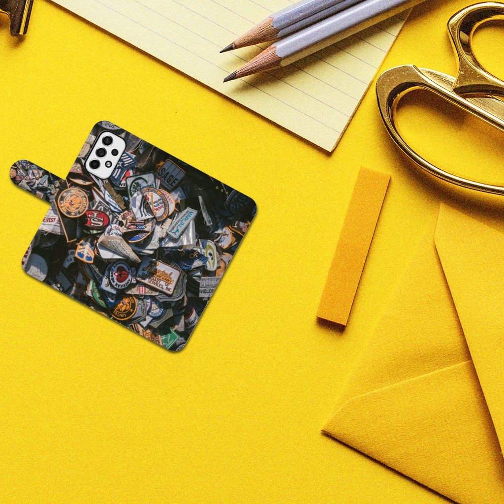Het ontwerp op dit hoesje is met recht bijzonder te noemen. Het is het perfecte design voor de ultieme verzamelaar, vanwege de bonte collectie badges op het ontwerp. De afbeelding van de stoere strijkemblemen is origineel en leuk voor mensen die gek zijn op de Amerikaanse feel ervan. Met dit Telefoonhoesje met foto voor je Samsung Galaxy A53 val je zeker op! Dankzij de pasjeshouder in het boekhoesje, heb je altijd je belangrijkste bezittingen bij je. Super handig en ook nog eens erg mooi. En bovenal is je telefoon meteen goed beschermd tegen krassen en beschadigingen. Dit hoesje met badges-ontwerp heeft een lipje aan de buitenkant en een houder gemaakt van TPU.