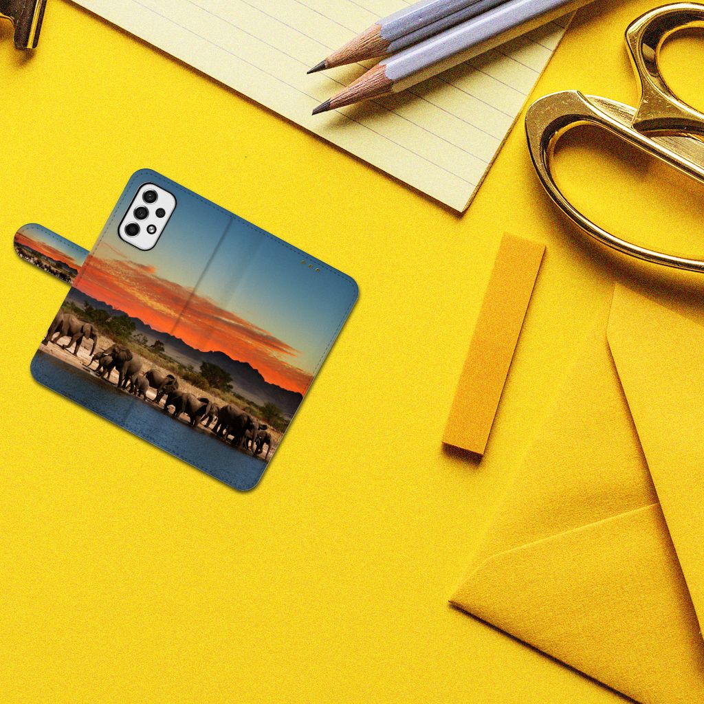 Op dit hoesje zie je een kudde olifanten genieten van het koude water onder een prachtige rode lucht. Dit hoesje straalt pure natuur uit, de olifant is namelijk het grootste landdier. Gegarandeerd zijn olifanten ook erg sterk, evenals onze bookcase. Als je jouw Samsung Galaxy A53 hierin bewaart, loop je weinig kans op beschadigingen. Zolang hij in het hoesje zit, is hij volledig beschermd. Ook als je je telefoon per ongeluk laat vallen, biedt dit Telefoonhoesje met Pasjes optimale bescherming. Er kan bijna niks meer fout gaan. Het hoesje is vervaardigd uit duurzaam materiaal, waardoor het lang mee zal gaan.
