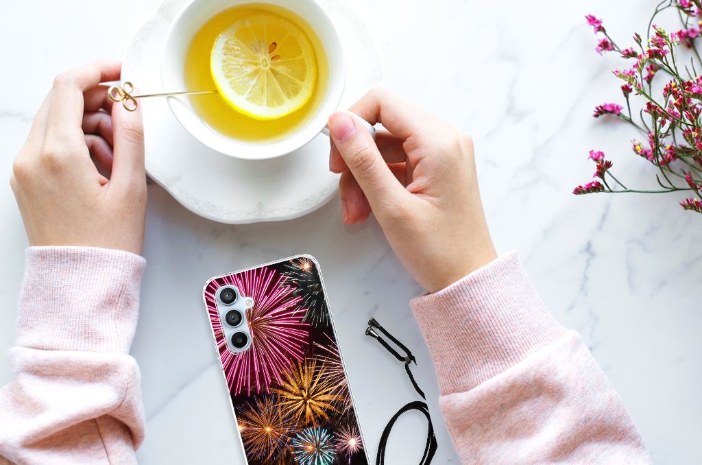 Ben je op zoek naar een uniek telefoonhoesje voor je Samsung Galaxy A54 5G? Dan ben je bij B2C Telecom aan het juiste adres! Speciaal voor jou hebben we dit prachtige Vuurwerk design in onze collectie hoesjes opgenomen. Het design wordt bedrukt op een Anti Shock Bumper Case en is gemaakt van flexibel rubber. Het hoesje is perfect voor de actieve smartphonegebruiker door de opstaande randen/hoeken. Denk aan mensen die veel sporten, reizen of wandelen en net iets meer zekerheid willen als het op hun geliefde telefoon aankomt. Het design wordt alleen aan de bovenkant van het hoesje bedrukt en de randen blijven transparant. Aan de zijkanten zijn uitsparingen gemaakt waardoor je met gemak alle knoppen en poorten kunt bedienen. Wij adviseren om dit hoesje in combinatie met een screenprotector te gebruiken voor een langere levensduur van je telefoon. Wil je dit hoesje nog iets extra's geven? Voeg dan gratis je naam of een quote toe! Is dit design hoesje toch niet helemaal wat je zocht? Ontwerp dan zelf een hoesje in ons ontwerpprogramma.