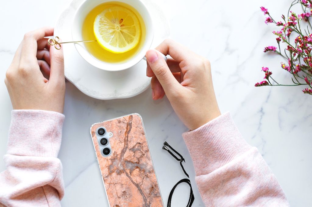 Ben je op zoek naar een uniek telefoonhoesje voor je Samsung Galaxy A54 5G? Dan ben je bij B2C Telecom aan het juiste adres! Speciaal voor jou hebben we dit prachtige Marmer Oranje design in onze collectie hoesjes opgenomen. Het design wordt bedrukt op een Anti-Shock Hoesje en is gemaakt van flexibel rubber. Het hoesje is perfect voor de actieve smartphonegebruiker door de opstaande randen/hoeken. Denk aan mensen die veel sporten, reizen of wandelen en net iets meer zekerheid willen als het op hun geliefde telefoon aankomt. Het design wordt alleen aan de bovenkant van het hoesje bedrukt en de randen blijven transparant. Aan de zijkanten zijn uitsparingen gemaakt waardoor je met gemak alle knoppen en poorten kunt bedienen. Wij adviseren om dit hoesje in combinatie met een screenprotector te gebruiken voor een langere levensduur van je telefoon. Wil je dit hoesje nog iets extra's geven? Voeg dan gratis je naam of een quote toe! Is dit design hoesje toch niet helemaal wat je zocht? Ontwerp dan zelf een hoesje in ons ontwerpprogramma.