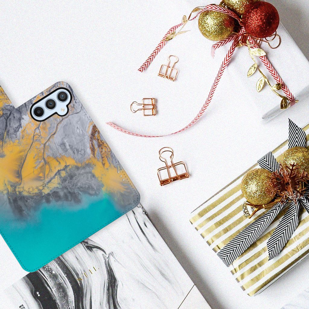 Dit Samsung Galaxy A54 5G Bookcase met Marble Blue Gold is het waard om een blokje voor om te fietsen. Dit is echter helemaal niet nodig. Als je het hoesje met marmer blauw met goud nu bestelt heb je het supersnel in huis. Je kunt er bij wijze van spreken voor de brievenbus op blijven wachten. Je hebt diverse marmersoorten in veel verschillende kleuren. We hebben enkele mooie kleuren op design hoesjes gezet, zoals in dit geval marmer blauw met goud. Het marmer wordt bedrukt op alle zijden van het boekhoesje, dat beschikt over vakjes voor pasjes en briefgeld en een magnetisch lipje aan de buitenzijde. Verder heeft de case met marmer blauw met goud een houder van TPU. De rijkheid aan kleuren en variaties in afwerking is een fraaie eigenschap van marmer. Dit boekhoesje met marmer blauw met goud heeft ook veel schitterende eigenschappen en is de ideale bescherming voor jouw smartphone.