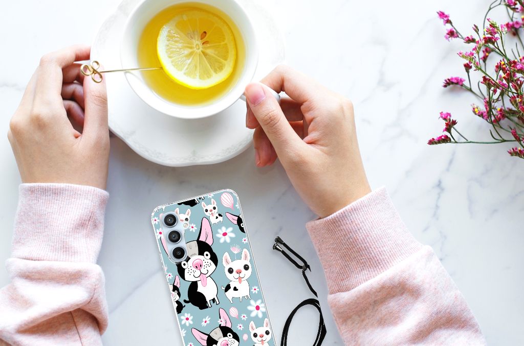 Ben je op zoek naar een uniek telefoonhoesje voor je Samsung Galaxy A54 5G? Dan ben je bij B2C Telecom aan het juiste adres! Speciaal voor jou hebben we dit prachtige Hondjes design in onze collectie hoesjes opgenomen. Het design wordt bedrukt op een Case Anti-shock en is gemaakt van flexibel rubber. Het hoesje is perfect voor de actieve smartphonegebruiker door de opstaande randen/hoeken. Denk aan mensen die veel sporten, reizen of wandelen en net iets meer zekerheid willen als het op hun geliefde telefoon aankomt. Het design wordt alleen aan de bovenkant van het hoesje bedrukt en de randen blijven transparant. Aan de zijkanten zijn uitsparingen gemaakt waardoor je met gemak alle knoppen en poorten kunt bedienen. Wij adviseren om dit hoesje in combinatie met een screenprotector te gebruiken voor een langere levensduur van je telefoon. Wil je dit hoesje nog iets extra's geven? Voeg dan gratis je naam of een quote toe! Is dit design hoesje toch niet helemaal wat je zocht? Ontwerp dan zelf een hoesje in ons ontwerpprogramma.