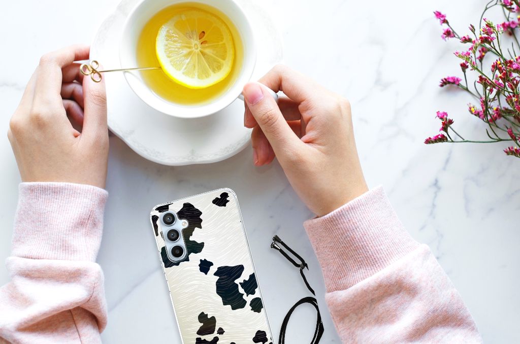Ben je op zoek naar een uniek telefoonhoesje voor je Samsung Galaxy A54 5G? Dan ben je bij B2C Telecom aan het juiste adres! Speciaal voor jou hebben we dit prachtige Koeienvlekken design in onze collectie hoesjes opgenomen. Het design wordt bedrukt op een Case Anti-shock en is gemaakt van flexibel rubber. Het hoesje is perfect voor de actieve smartphonegebruiker door de opstaande randen/hoeken. Denk aan mensen die veel sporten, reizen of wandelen en net iets meer zekerheid willen als het op hun geliefde telefoon aankomt. Het design wordt alleen aan de bovenkant van het hoesje bedrukt en de randen blijven transparant. Aan de zijkanten zijn uitsparingen gemaakt waardoor je met gemak alle knoppen en poorten kunt bedienen. Wij adviseren om dit hoesje in combinatie met een screenprotector te gebruiken voor een langere levensduur van je telefoon. Wil je dit hoesje nog iets extra's geven? Voeg dan gratis je naam of een quote toe! Is dit design hoesje toch niet helemaal wat je zocht? Ontwerp dan zelf een hoesje in ons ontwerpprogramma.