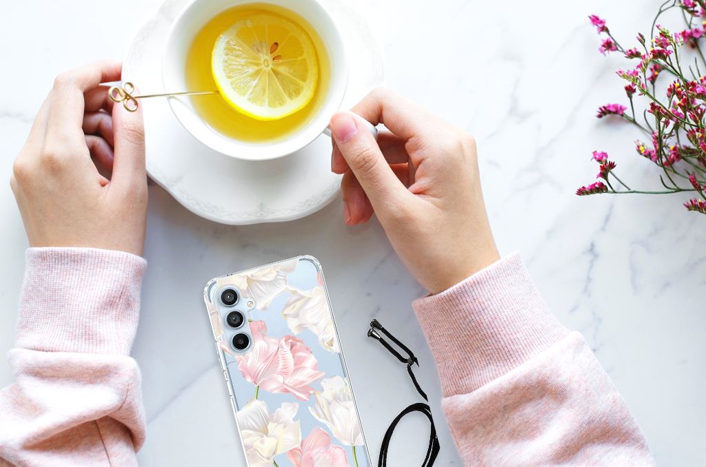 Ben je op zoek naar een uniek telefoonhoesje voor je Samsung Galaxy A54 5G? Dan ben je bij B2C Telecom aan het juiste adres! Speciaal voor jou hebben we dit prachtige Lovely Flowers design in onze collectie hoesjes opgenomen. Het design wordt bedrukt op een Case en is gemaakt van flexibel rubber. Het hoesje is perfect voor de actieve smartphonegebruiker door de opstaande randen/hoeken. Denk aan mensen die veel sporten, reizen of wandelen en net iets meer zekerheid willen als het op hun geliefde telefoon aankomt. Het design wordt alleen aan de bovenkant van het hoesje bedrukt en de randen blijven transparant. Aan de zijkanten zijn uitsparingen gemaakt waardoor je met gemak alle knoppen en poorten kunt bedienen. Wij adviseren om dit hoesje in combinatie met een screenprotector te gebruiken voor een langere levensduur van je telefoon. Wil je dit hoesje nog iets extra's geven? Voeg dan gratis je naam of een quote toe! Is dit design hoesje toch niet helemaal wat je zocht? Ontwerp dan zelf een hoesje in ons ontwerpprogramma.