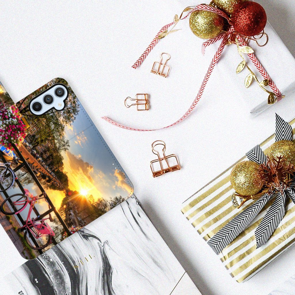 Wie houdt er niet van Amsterdam? Het is de trots van Nederland en de Amsterdamse grachten zijn daar een belangrijk onderdeel van. Met dit telefoonhoesje waar de Amsterdamse grachten op staan afgebeeld, kun jij jezelf als trotse Nederlander presenteren. Bovendien is deze Samsung Galaxy A54 5G Flip Cover aan alle kanten bedrukt en ziet hij er dus zeker niet saai uit. Ook op vakantie zal iedereen zien dat jij een Nederlander bent. Het biedt zelfs de mogelijkheid om meer Nederlanders te ontmoeten in een vreemd land, wat bijvoorbeeld op een camping wel gezellig kan zijn. Ook is jouw telefoon goed beschermd in dit bookcase hoesje doordat er aan alle zijden bescherming zit.