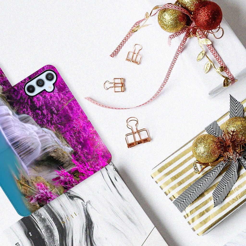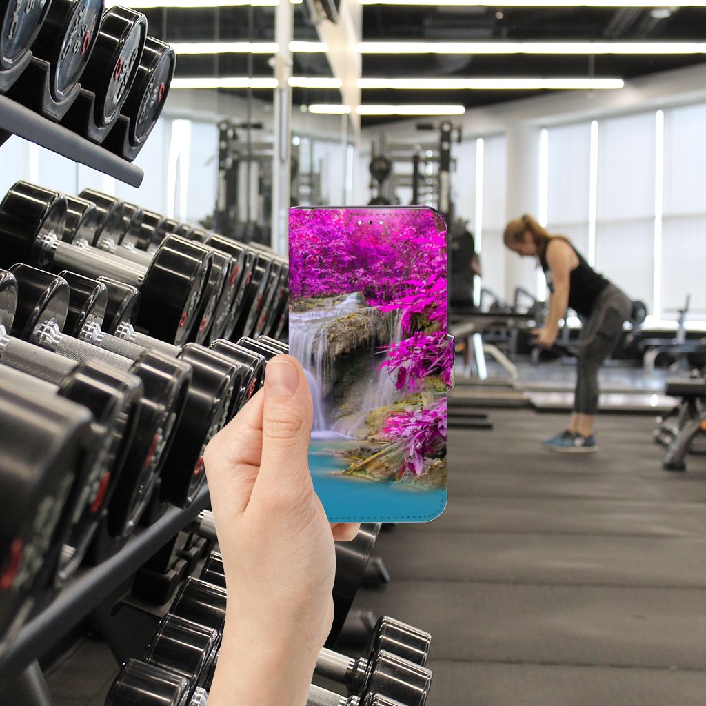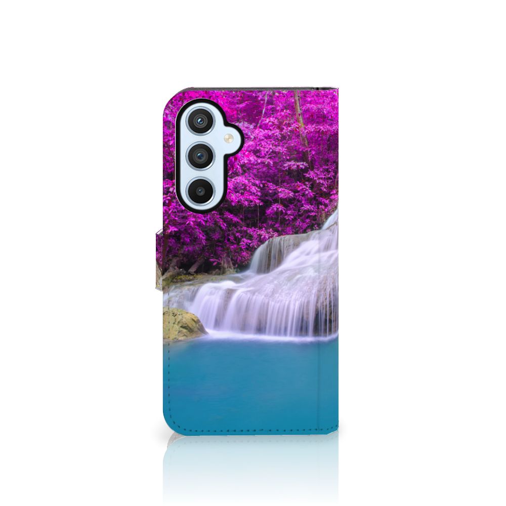 Op deze Samsung Galaxy A54 5G Flip Cover zie je een kalme waterval en de achtergrond is gevuld met paarse bomen. Samen creëert dit een prachtig en kleurrijk spektakel, iets wat je graag op je Samsung Galaxy A54 5G hoesje ziet. Wanneer je hiernaar kijkt, word je direct kalm. Als jij je even boos of verdrietig voelt, hoef je alleen maar naar jouw boekhoesje te kijken om weer blij te worden. Ook jouw telefoon zal blij zijn met deze Flip Cover aangezien deze goede bescherming biedt. Als jij je telefoon per ongeluk laat vallen, is er niets aan de hand. Het hoesje zorgt ervoor dat de telefoon intact blijft. Zelfs als hij op het beeldscherm zou vallen, is er dankzij de magnetische sluiting, niets aan de hand.