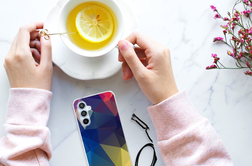 Ben je op zoek naar een uniek telefoonhoesje voor je Samsung Galaxy A54 5G? Dan ben je bij B2C Telecom aan het juiste adres! Speciaal voor jou hebben we dit prachtige Polygon Dark design in onze collectie hoesjes opgenomen. Het design wordt bedrukt op een Shockproof Case en is gemaakt van flexibel rubber. Het hoesje is perfect voor de actieve smartphonegebruiker door de opstaande randen/hoeken. Denk aan mensen die veel sporten, reizen of wandelen en net iets meer zekerheid willen als het op hun geliefde telefoon aankomt. Het design wordt alleen aan de bovenkant van het hoesje bedrukt en de randen blijven transparant. Aan de zijkanten zijn uitsparingen gemaakt waardoor je met gemak alle knoppen en poorten kunt bedienen. Wij adviseren om dit hoesje in combinatie met een screenprotector te gebruiken voor een langere levensduur van je telefoon. Wil je dit hoesje nog iets extra's geven? Voeg dan gratis je naam of een quote toe! Is dit design hoesje toch niet helemaal wat je zocht? Ontwerp dan zelf een hoesje in ons ontwerpprogramma.