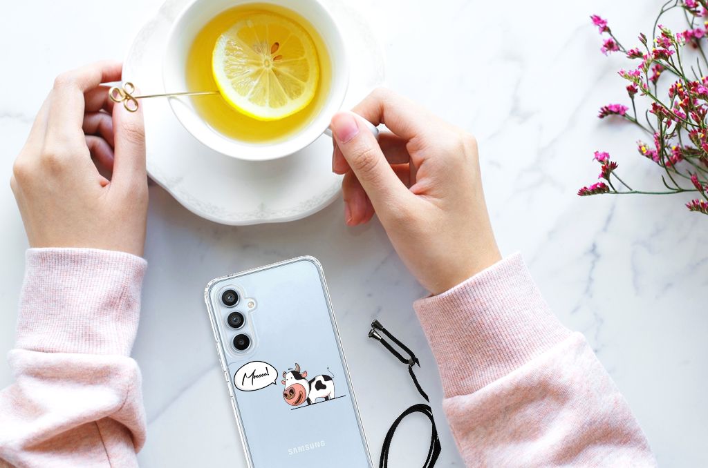 Ben je op zoek naar een uniek telefoonhoesje voor je Samsung Galaxy A54 5G? Dan ben je bij B2C Telecom aan het juiste adres! Speciaal voor jou hebben we dit prachtige Cow design in onze collectie hoesjes opgenomen. Het design wordt bedrukt op een Stevig Bumper Hoesje en is gemaakt van flexibel rubber. Het hoesje is perfect voor de actieve smartphonegebruiker door de opstaande randen/hoeken. Denk aan mensen die veel sporten, reizen of wandelen en net iets meer zekerheid willen als het op hun geliefde telefoon aankomt. Het design wordt alleen aan de bovenkant van het hoesje bedrukt en de randen blijven transparant. Aan de zijkanten zijn uitsparingen gemaakt waardoor je met gemak alle knoppen en poorten kunt bedienen. Wij adviseren om dit hoesje in combinatie met een screenprotector te gebruiken voor een langere levensduur van je telefoon. Wil je dit hoesje nog iets extra's geven? Voeg dan gratis je naam of een quote toe! Is dit design hoesje toch niet helemaal wat je zocht? Ontwerp dan zelf een hoesje in ons ontwerpprogramma.