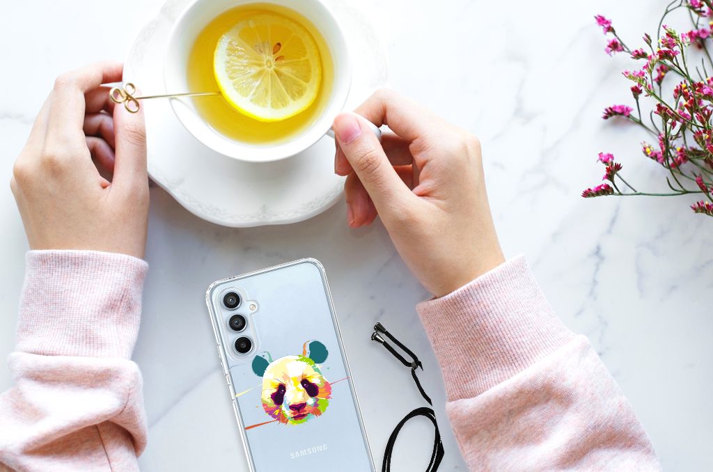 Ben je op zoek naar een uniek telefoonhoesje voor je Samsung Galaxy A54 5G? Dan ben je bij B2C Telecom aan het juiste adres! Speciaal voor jou hebben we dit prachtige Panda Color design in onze collectie hoesjes opgenomen. Het design wordt bedrukt op een Stevig Bumper Hoesje en is gemaakt van flexibel rubber. Het hoesje is perfect voor de actieve smartphonegebruiker door de opstaande randen/hoeken. Denk aan mensen die veel sporten, reizen of wandelen en net iets meer zekerheid willen als het op hun geliefde telefoon aankomt. Het design wordt alleen aan de bovenkant van het hoesje bedrukt en de randen blijven transparant. Aan de zijkanten zijn uitsparingen gemaakt waardoor je met gemak alle knoppen en poorten kunt bedienen. Wij adviseren om dit hoesje in combinatie met een screenprotector te gebruiken voor een langere levensduur van je telefoon. Wil je dit hoesje nog iets extra's geven? Voeg dan gratis je naam of een quote toe! Is dit design hoesje toch niet helemaal wat je zocht? Ontwerp dan zelf een hoesje in ons ontwerpprogramma.