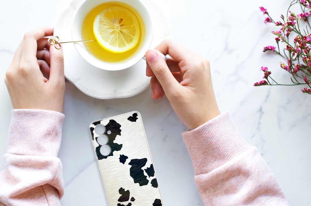 De vlekken op de huid van een koe hebben een camouflage functie. Met deze Samsung Galaxy A54 5G TPU Hoesje met Koeienvlekken hoef je je geen zorgen te maken dat je smartphone schade oploopt. De koeienvlekken zetten we op een tpu case op het moment dat jij je bestelling plaatst. Hierdoor krijgt jouw telefoon een print van koeienvlekken van zeer hoge kwaliteit. Ook omdat we het bedrukken van deze case geheel zelf doen. Jouw telefoon is vooral aan de achterkant en zijkanten goed beschermd. De print van koeienvlekken komt op de bovenkant van het hoesje te staan, de randen blijven doorzichtig. Roofdieren zijn niet geïnteresseerd in koeien dankzij de vlekken op hun huid. Deze beschermende werking heeft ook jouw hoesje met koeienprint.