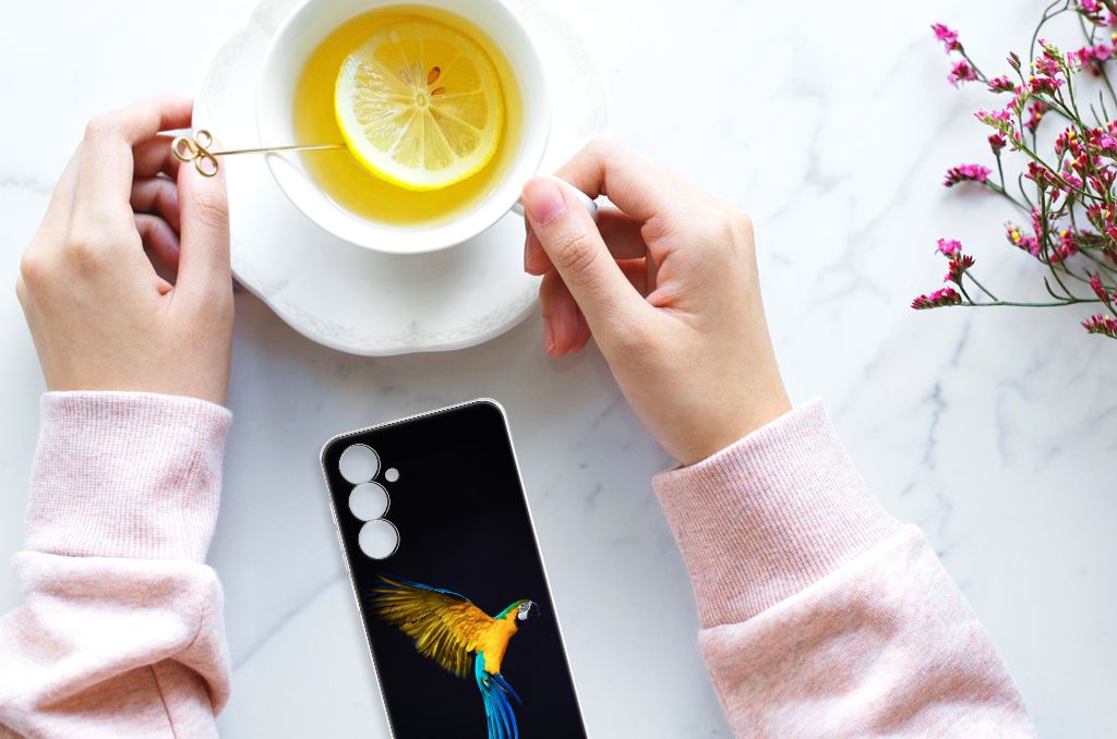 Dit design hoesje met Papegaai tegen een zwarte achtergrond is een zeer flexibele bescherming voor jouw smartphone. Dit komt vooral omdat deze print op een tpu case staat. Dit is een zeer buigzaam hoesje, dat de telefoon vooral aan de achterkant en zijkanten beschermt. De bovenkant van de Samsung Galaxy A54 5G TPU Hoesje wordt bedrukt met deze schitterende print. De zijkanten blijven doorzichtig. Papegaaien zijn erg sociale vogels die voldoende aandacht en gezelschap nodig hebben. Als je er voor kiest om een papegaai aan te schaffen, is het een goed idee om een koppeltje te nemen. Koop je meerdere tpu cases met een papegaai, dan ga je automatisch minder betalen per hoesje. Wij hanteren een systeem van bundelkorting. Dus koop dit hoesje met opstaande randen voor een spotprijs.