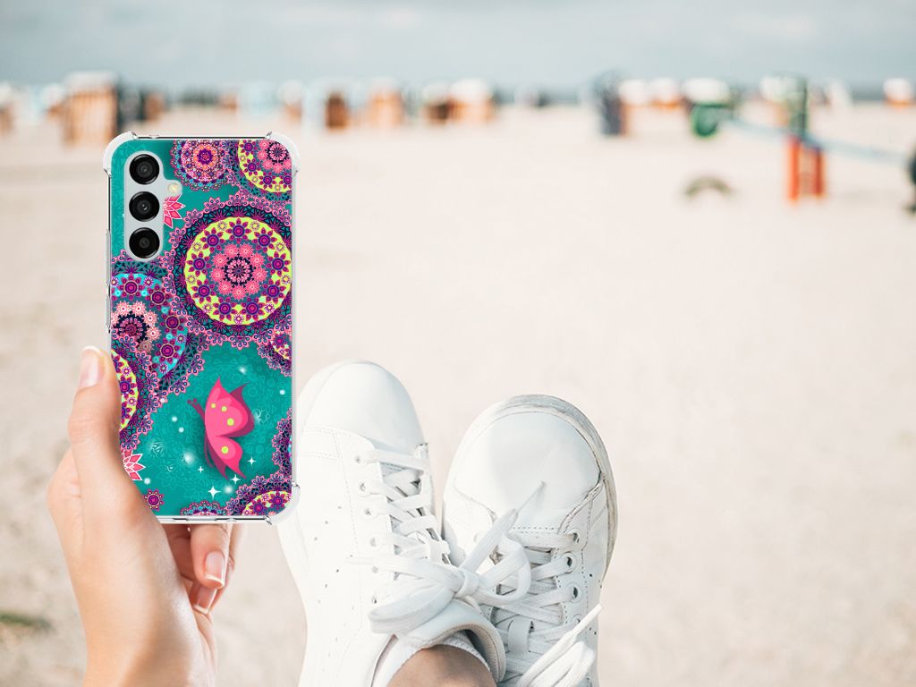 Ben je op zoek naar een uniek telefoonhoesje voor je Samsung Galaxy A54? Dan ben je bij B2C Telecom aan het juiste adres! Speciaal voor jou hebben we dit prachtige Cirkels en Vlinders design in onze collectie hoesjes opgenomen. Het design wordt bedrukt op een Back Cover en is gemaakt van flexibel rubber. Het hoesje is perfect voor de actieve smartphonegebruiker door de opstaande randen/hoeken. Denk aan mensen die veel sporten, reizen of wandelen en net iets meer zekerheid willen als het op hun geliefde telefoon aankomt. Het design wordt alleen aan de bovenkant van het hoesje bedrukt en de randen blijven transparant. Aan de zijkanten zijn uitsparingen gemaakt waardoor je met gemak alle knoppen en poorten kunt bedienen. Wij adviseren om dit hoesje in combinatie met een screenprotector te gebruiken voor een langere levensduur van je telefoon. Wil je dit hoesje nog iets extra's geven? Voeg dan gratis je naam of een quote toe! Is dit design hoesje toch niet helemaal wat je zocht? Ontwerp dan zelf een hoesje in ons ontwerpprogramma.