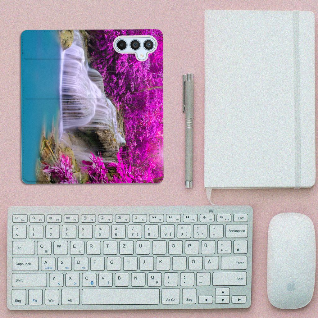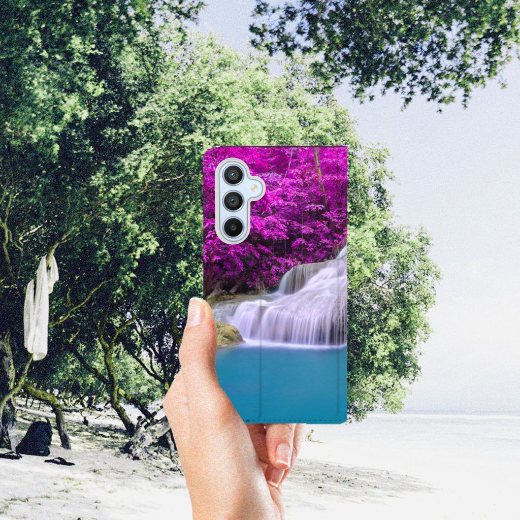 Van een waterval kun je een heel rustig gevoel krijgen, zeker als die op een Samsung Galaxy A54 Book Cover staat dat jouw smartphone perfect beschermt tegen allerlei vormen van schade zoals krassen, barsten en scheuren. In de buurt van een waterval ben je tijdens warme zomerdagen niet alleen verzekerd van aangename verkoeling, het is ook een bijzonder rustgevende ervaring. Uit onderzoek blijkt zelfs dat watervallen een helend effect hebben op allerlei aandoeningen. Extra bijzonderheid aan de stand case vormen de paarse bossen op de achtergrond. Dit smartphonehoesje beschermt jouw telefoon aan alle zijden en beschikt over een opbergvakje voor pasjes en briefgeld. De case sluit perfect af dankzij de magneten van binnen. De houder aan de binnenzijde is van TPU. Alle zijden van het hoesje worden bedrukt. Een mooiere waterval met paarse achtergrond kom je op geen enkel ander hoesje tegen.