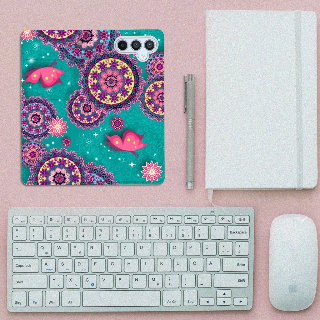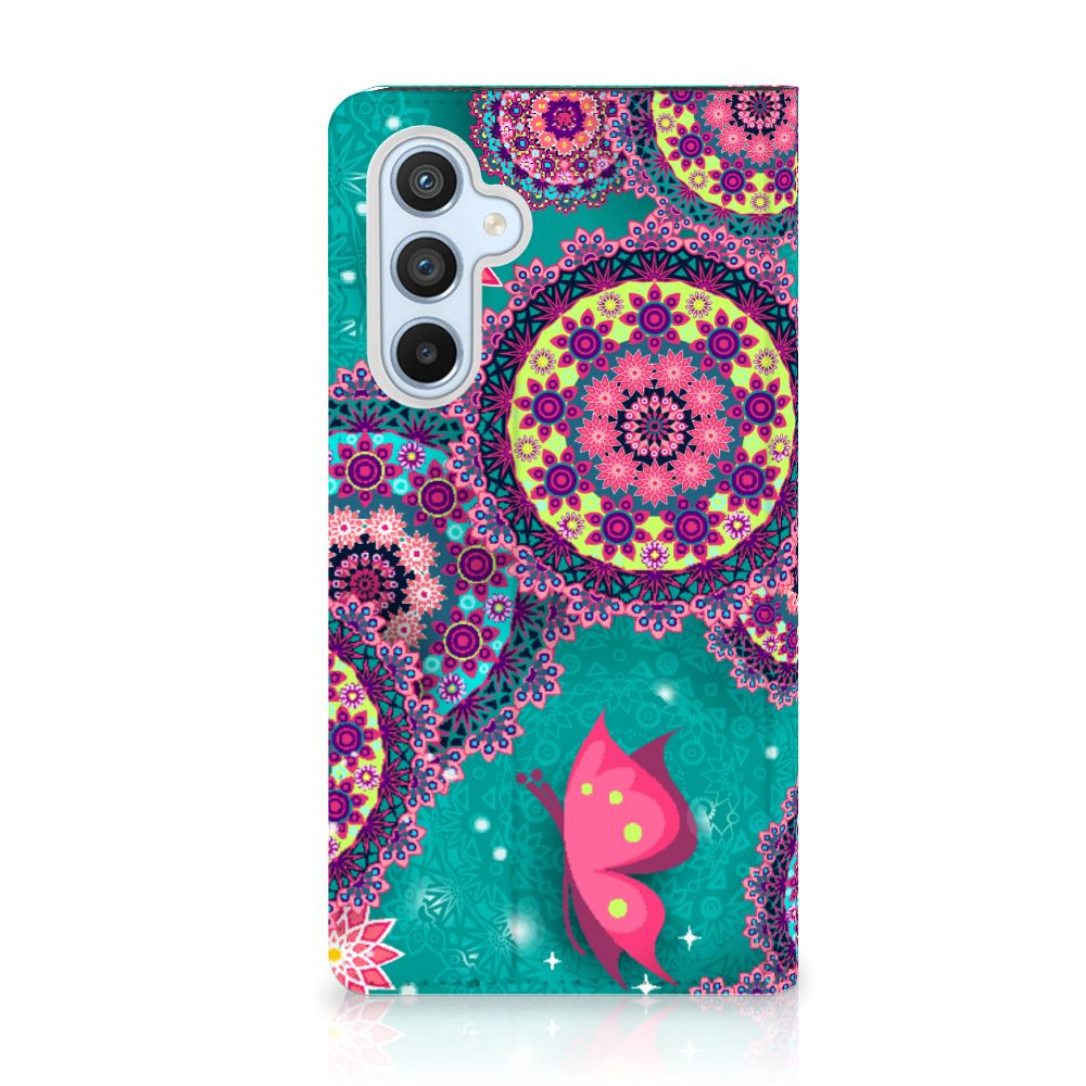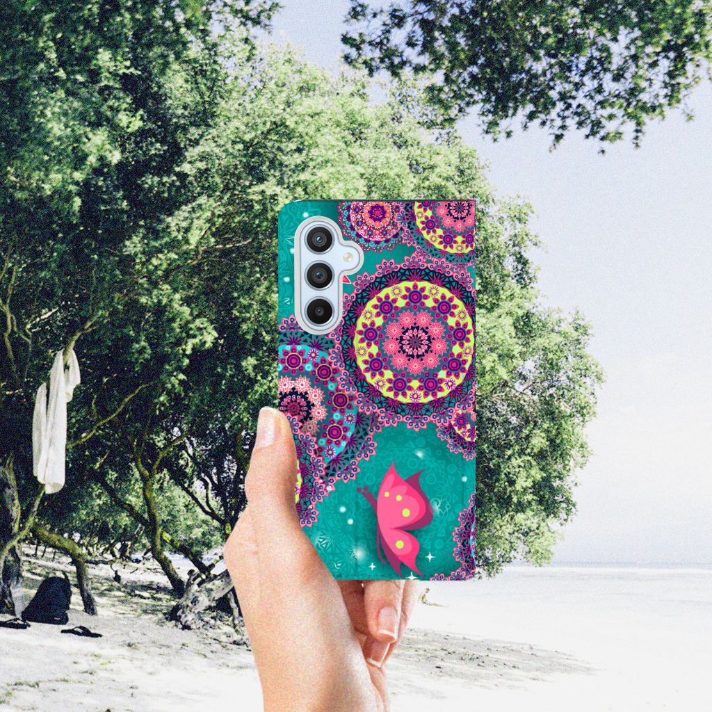 Deze opvallende Samsung Galaxy A54 Bookcase met Cirkels en Vlinders is een ware eyecatcher. De meeste vlinders hebben een onopvallende vleugelkleur en dat kun je van de soort op dit hoesje ook zeker wel zeggen. Wij kunnen deze opvallende vlinders en cirkels op een zeer handige stand case zetten. Deze hoesjes zijn zeer gewild. Met onze geavanceerde printer zetten we de print van opvallende vlinders en cirkels op alle zijden van het hoesje. De case met vlinders heeft aan de binnenkant een houder waarin je jouw creditcard of ander pasje kwijt kunt. De case heeft bovendien een handige standaard. Verder is je telefoon natuurlijk maximaal beschermd met deze stand case met print van opvallende en kleurrijke vlinders. De houder aan de binnenzijde van het design hoesje met opvallende vlinder print is van TPU.