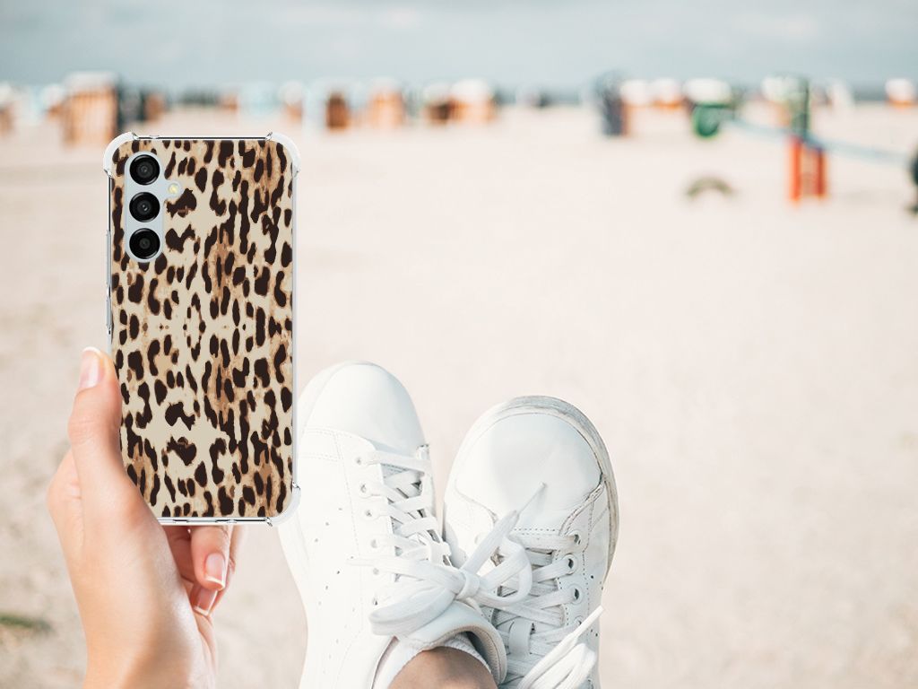 Ben je op zoek naar een uniek telefoonhoesje voor je Samsung Galaxy A54? Dan ben je bij B2C Telecom aan het juiste adres! Speciaal voor jou hebben we dit prachtige Leopard design in onze collectie hoesjes opgenomen. Het design wordt bedrukt op een Case Anti-shock en is gemaakt van flexibel rubber. Het hoesje is perfect voor de actieve smartphonegebruiker door de opstaande randen/hoeken. Denk aan mensen die veel sporten, reizen of wandelen en net iets meer zekerheid willen als het op hun geliefde telefoon aankomt. Het design wordt alleen aan de bovenkant van het hoesje bedrukt en de randen blijven transparant. Aan de zijkanten zijn uitsparingen gemaakt waardoor je met gemak alle knoppen en poorten kunt bedienen. Wij adviseren om dit hoesje in combinatie met een screenprotector te gebruiken voor een langere levensduur van je telefoon. Wil je dit hoesje nog iets extra's geven? Voeg dan gratis je naam of een quote toe! Is dit design hoesje toch niet helemaal wat je zocht? Ontwerp dan zelf een hoesje in ons ontwerpprogramma.