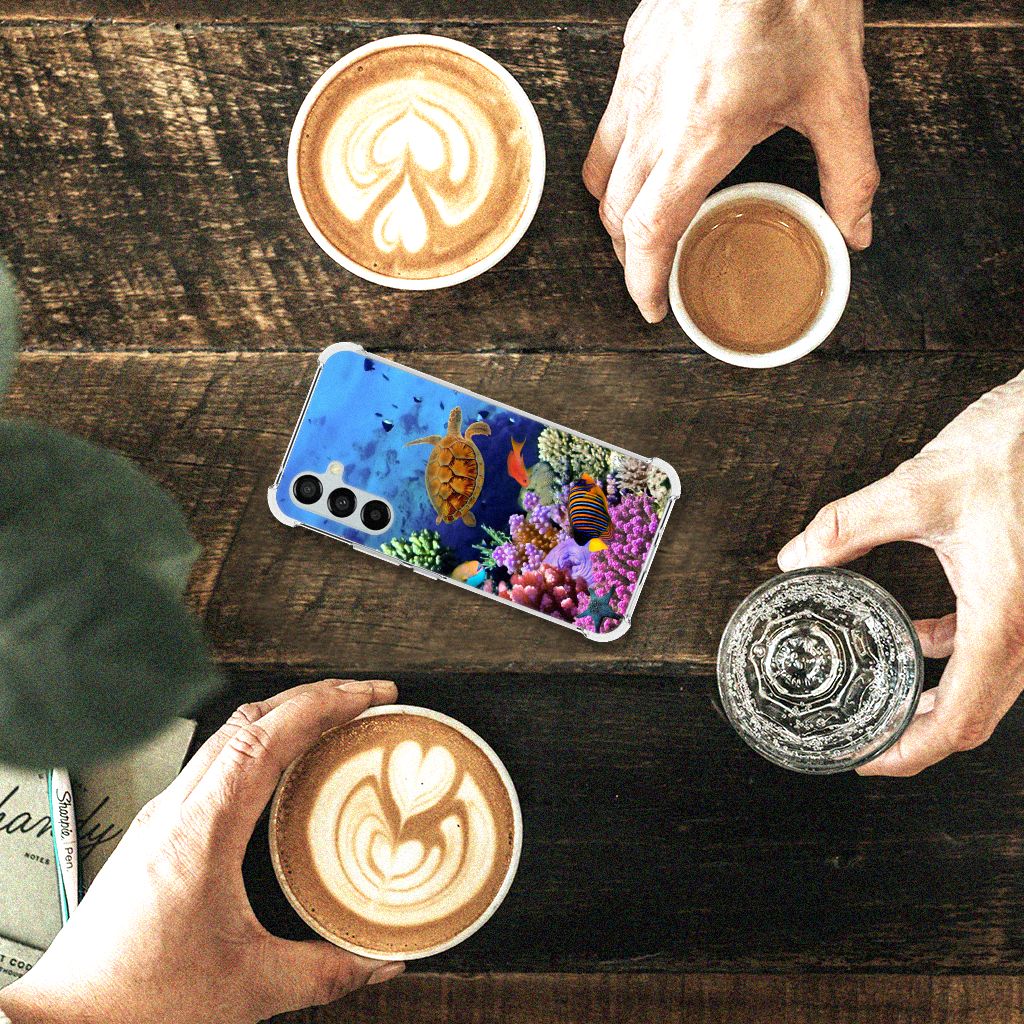 Ben je op zoek naar een uniek telefoonhoesje voor je Samsung Galaxy A54? Dan ben je bij B2C Telecom aan het juiste adres! Speciaal voor jou hebben we dit prachtige Vissen design in onze collectie hoesjes opgenomen. Het design wordt bedrukt op een Case Anti-shock en is gemaakt van flexibel rubber. Het hoesje is perfect voor de actieve smartphonegebruiker door de opstaande randen/hoeken. Denk aan mensen die veel sporten, reizen of wandelen en net iets meer zekerheid willen als het op hun geliefde telefoon aankomt. Het design wordt alleen aan de bovenkant van het hoesje bedrukt en de randen blijven transparant. Aan de zijkanten zijn uitsparingen gemaakt waardoor je met gemak alle knoppen en poorten kunt bedienen. Wij adviseren om dit hoesje in combinatie met een screenprotector te gebruiken voor een langere levensduur van je telefoon. Wil je dit hoesje nog iets extra's geven? Voeg dan gratis je naam of een quote toe! Is dit design hoesje toch niet helemaal wat je zocht? Ontwerp dan zelf een hoesje in ons ontwerpprogramma.