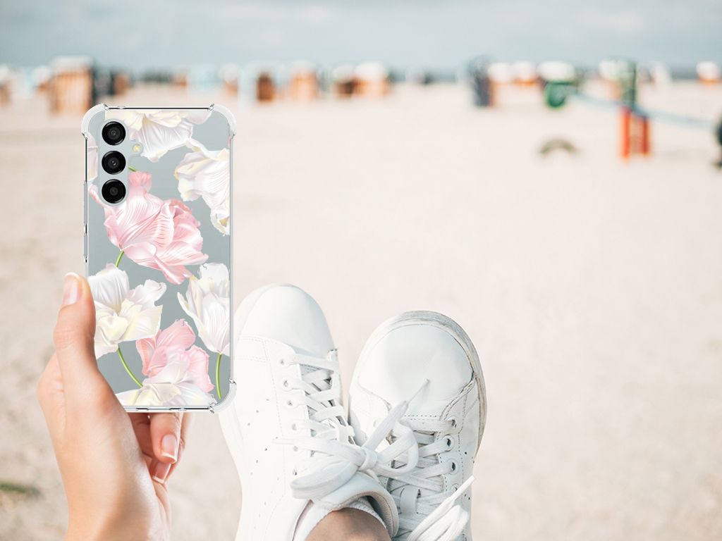 Ben je op zoek naar een uniek telefoonhoesje voor je Samsung Galaxy A54? Dan ben je bij B2C Telecom aan het juiste adres! Speciaal voor jou hebben we dit prachtige Lovely Flowers design in onze collectie hoesjes opgenomen. Het design wordt bedrukt op een Case en is gemaakt van flexibel rubber. Het hoesje is perfect voor de actieve smartphonegebruiker door de opstaande randen/hoeken. Denk aan mensen die veel sporten, reizen of wandelen en net iets meer zekerheid willen als het op hun geliefde telefoon aankomt. Het design wordt alleen aan de bovenkant van het hoesje bedrukt en de randen blijven transparant. Aan de zijkanten zijn uitsparingen gemaakt waardoor je met gemak alle knoppen en poorten kunt bedienen. Wij adviseren om dit hoesje in combinatie met een screenprotector te gebruiken voor een langere levensduur van je telefoon. Wil je dit hoesje nog iets extra's geven? Voeg dan gratis je naam of een quote toe! Is dit design hoesje toch niet helemaal wat je zocht? Ontwerp dan zelf een hoesje in ons ontwerpprogramma.