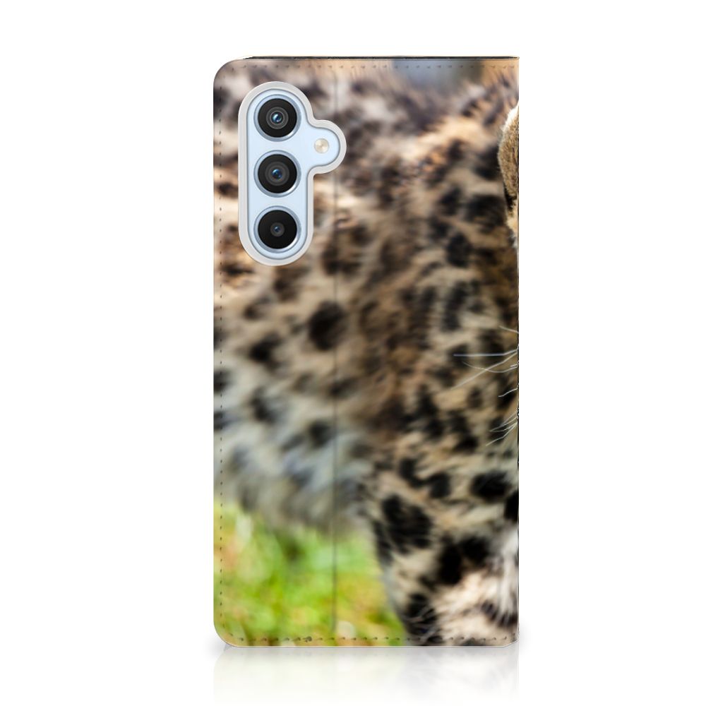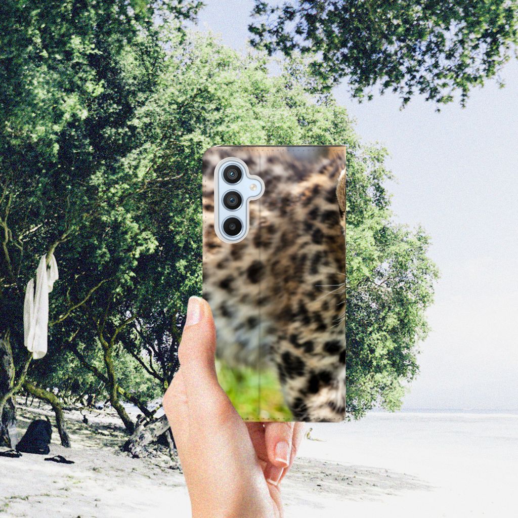 De luipaard is een grote, gespierde katachtige met korte, krachtige poten en een lange staart. Aangezien het op dit hoesje een baby luipaard betreft, zijn deze eigenschappen nog niet volledig tot wasdom gekomen. De kop van de luipaard is breed en een beetje rond van vorm met kleine, ronde oren. De snuit is middelgroot, met krachtige kaken en lange snorharen. De vacht van een luipaard is bedekt met veel zwarte vlekken. Kies je voor dit design hoesje, dan zal er van vlekken op jouw smartphone nooit en te nimmer sprake zijn. Het stoere en tegelijkertijd aandoenlijke design staat op een stand case. Een Samsung Galaxy A54 Hoesje maken beschermt jouw telefoon aan alle kanten en beschikt over een 1 opbergvakje en een speciale standaard. Het hoesje wordt afgesloten met een magneet aan de binnenzijde. De houder aan de binnenzijde is van TPU.