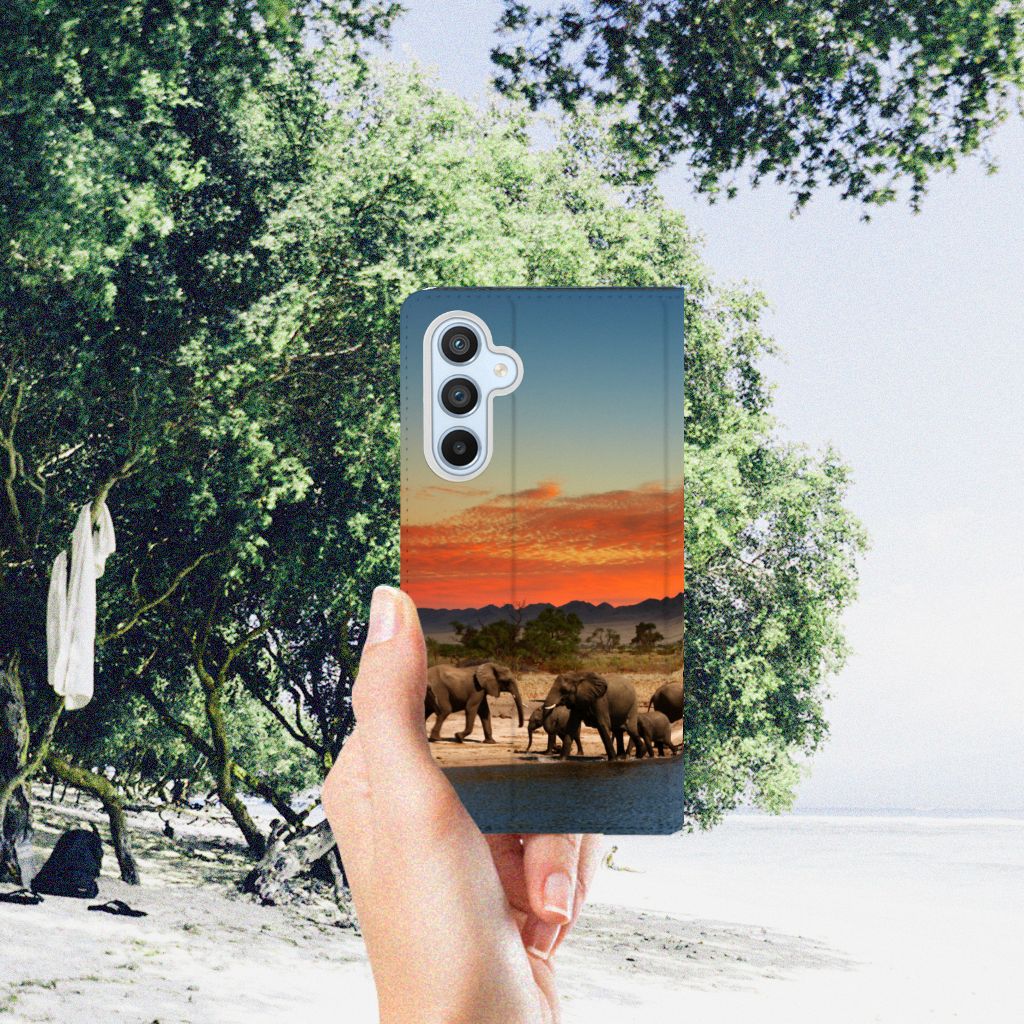 Dit hoesje is zo sterk als een olifant. Dat is goed nieuws, want jouw telefoon heeft een zeer goede bescherming nodig. Dat krijg je met dit design hoesje met print van Olifanten. De Afrikaanse olifant, het allergrootste landdier ter wereld, heeft waarschijnlijk het meest te lijden gehad van stroperij om het ivoor. Deze dieren verdienen dus een goede bescherming, net als jouw smartphone. Met een Samsung Galaxy A54 Hoesje maken met olifant erop krijg je dit zeker voor elkaar. De stand case beschermt alle zijden van je telefoon en heeft aan de binnenzijde een vakje waarin je een pasje kunt opbergen. De sterke olifant komt zeer goed tot zijn recht op deze case, die aan de binnenkant een houder heeft van tpu. Ook de magneet aan de binnenkant is zeer handig. Alle zijden van de case worden bedrukt met olifanten.