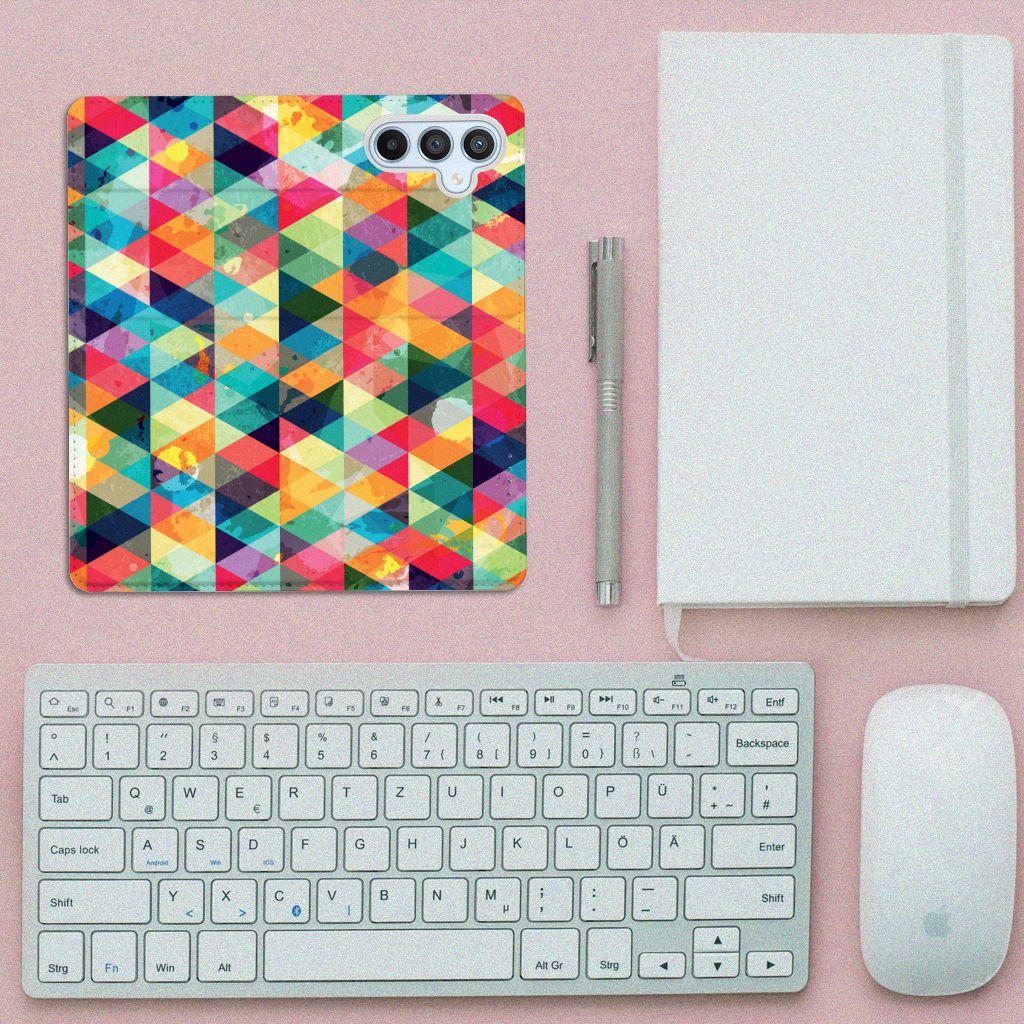 Van dit geruite design hoesje moet je een beetje houden. Maar als je het eenmaal in bezit hebt, ben je waarschijnlijk binnen no time verkocht. Het design heeft ruitjes in alle kleuren van de regenboog en door de grijze achtergrond kan het hoesje enigszins druk overkomen. Maar tegelijkertijd is dit de kracht van het hoesje. Met dit design hoesje Geruit zal je namelijk heel erg opvallen. Dit is voor veel vooral jonge smartphone gebruikers een belangrijk voordeel. Deze geruite print staat op een Samsung Galaxy A54 Hoesje met Magneet. Dit zeer populaire smartphone hoesje heeft 1 vakje en is aan alle zijden bedrukt. Verder heeft de case een standaard en een magneet aan de binnenkant. Het ruitjespatroon zie je op kleding al enige tijd terugkomen en op deze stand case staat het ook erg goed. De houder is van TPU, de buitenzijde van PU-leer.