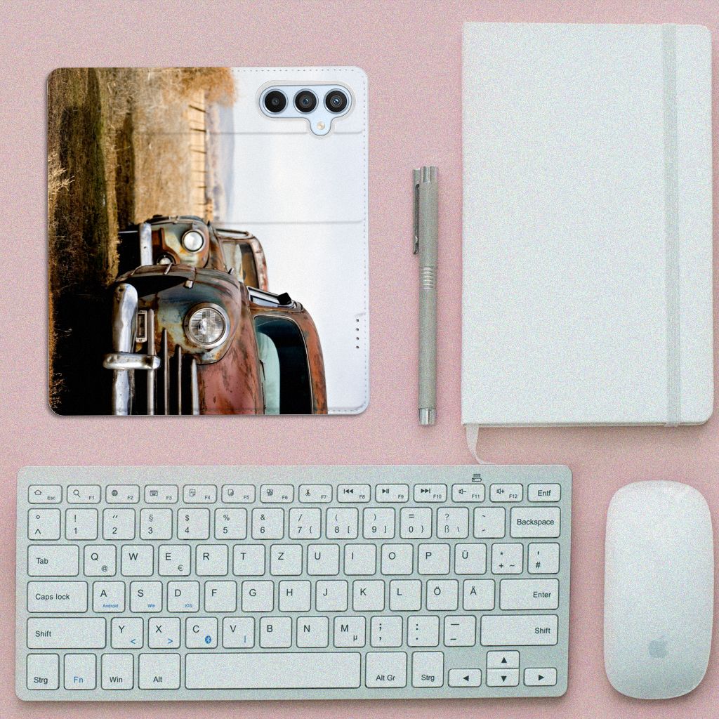 Autoliefhebbers met een voorkeur voor vintage zullen in hun nopjes zijn met dit design hoesje. We hebben een boekhoesje met print van Vintage Auto speciaal op maat gemaakt voor jouw smartphone. Door de achtergrond van dit hoesje krijgt de case met vintage auto’s echt een mooie retro look. Een Samsung Galaxy A54 Stand Case is een van onze meest populaire producten. Dit komt onder andere doordat ze jouw smartphone aan alle zijden beschermen. Verder is de case zeer praktisch. Wat denk je bijvoorbeeld van het vakje aan de binnenzijde en de magnetische sluiting. Verder heeft het hoesje een flexibele en stevige houder van TPU aan de binnenzijde. Zie je liever je eigen auto staan op de stand case? Dan raden we je aan zelf een stand case met foto’s van auto’s te ontwerpen op onze website.
