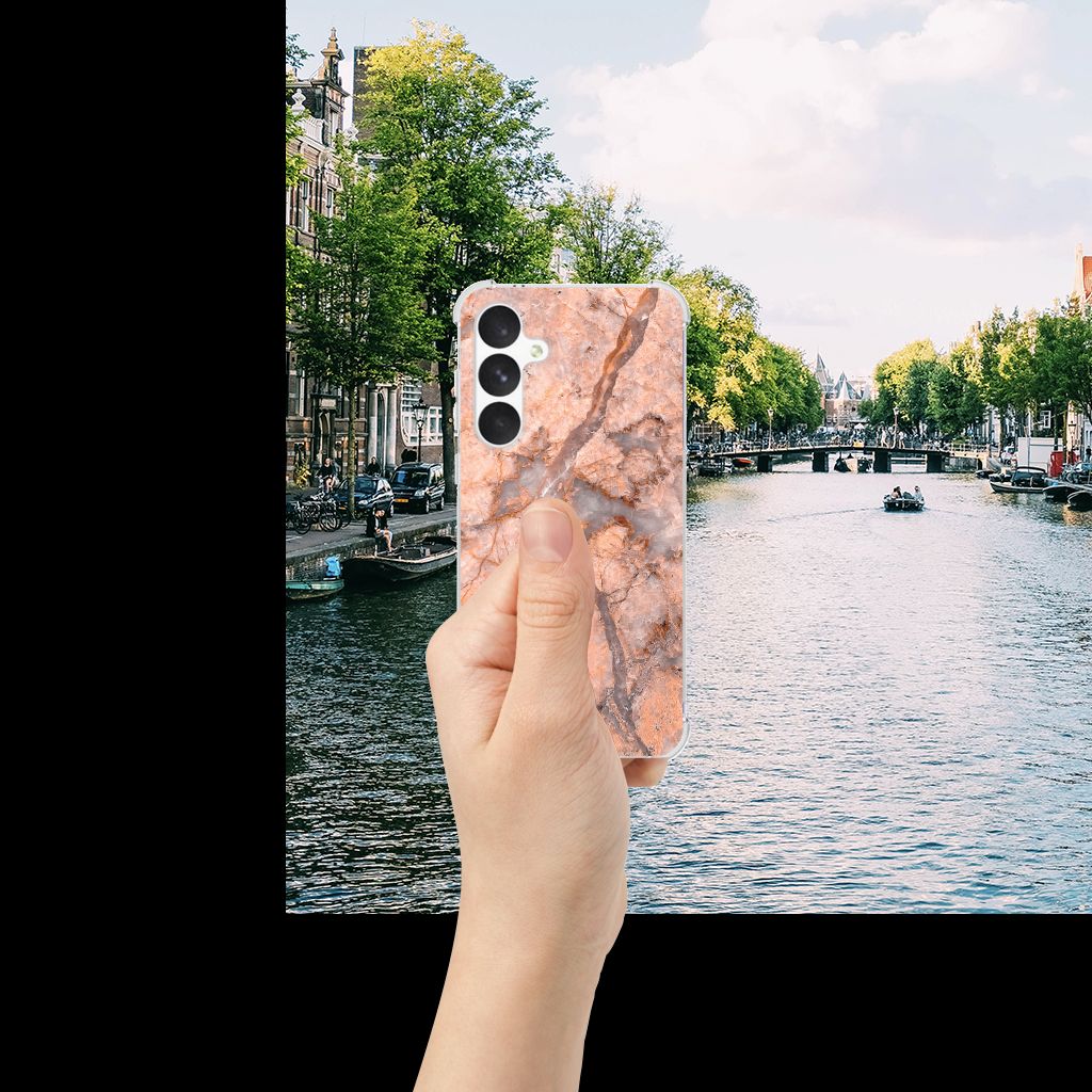 Ben je op zoek naar een uniek telefoonhoesje voor je Samsung Galaxy A55? Dan ben je bij B2C Telecom aan het juiste adres! Speciaal voor jou hebben we dit prachtige Marmer Oranje design in onze collectie hoesjes opgenomen. Het design wordt bedrukt op een Anti-Shock Hoesje en is gemaakt van flexibel rubber. Het hoesje is perfect voor de actieve smartphonegebruiker door de opstaande randen/hoeken. Denk aan mensen die veel sporten, reizen of wandelen en net iets meer zekerheid willen als het op hun geliefde telefoon aankomt. Het design wordt alleen aan de bovenkant van het hoesje bedrukt en de randen blijven transparant. Aan de zijkanten zijn uitsparingen gemaakt waardoor je met gemak alle knoppen en poorten kunt bedienen. Wij adviseren om dit hoesje in combinatie met een screenprotector te gebruiken voor een langere levensduur van je telefoon. Wil je dit hoesje nog iets extra's geven? Voeg dan gratis je naam of een quote toe! Is dit design hoesje toch niet helemaal wat je zocht? Ontwerp dan zelf een hoesje in ons ontwerpprogramma.