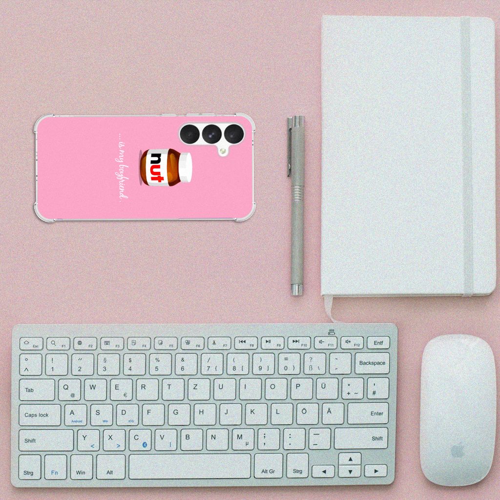 Ben je op zoek naar een uniek telefoonhoesje voor je Samsung Galaxy A55? Dan ben je bij B2C Telecom aan het juiste adres! Speciaal voor jou hebben we dit prachtige Nut Boyfriend design in onze collectie hoesjes opgenomen. Het design wordt bedrukt op een Beschermhoes en is gemaakt van flexibel rubber. Het hoesje is perfect voor de actieve smartphonegebruiker door de opstaande randen/hoeken. Denk aan mensen die veel sporten, reizen of wandelen en net iets meer zekerheid willen als het op hun geliefde telefoon aankomt. Het design wordt alleen aan de bovenkant van het hoesje bedrukt en de randen blijven transparant. Aan de zijkanten zijn uitsparingen gemaakt waardoor je met gemak alle knoppen en poorten kunt bedienen. Wij adviseren om dit hoesje in combinatie met een screenprotector te gebruiken voor een langere levensduur van je telefoon. Wil je dit hoesje nog iets extra's geven? Voeg dan gratis je naam of een quote toe! Is dit design hoesje toch niet helemaal wat je zocht? Ontwerp dan zelf een hoesje in ons ontwerpprogramma.
