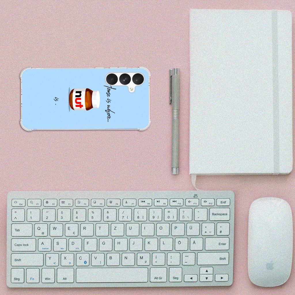 Ben je op zoek naar een uniek telefoonhoesje voor je Samsung Galaxy A55? Dan ben je bij B2C Telecom aan het juiste adres! Speciaal voor jou hebben we dit prachtige Nut Home design in onze collectie hoesjes opgenomen. Het design wordt bedrukt op een Beschermhoes en is gemaakt van flexibel rubber. Het hoesje is perfect voor de actieve smartphonegebruiker door de opstaande randen/hoeken. Denk aan mensen die veel sporten, reizen of wandelen en net iets meer zekerheid willen als het op hun geliefde telefoon aankomt. Het design wordt alleen aan de bovenkant van het hoesje bedrukt en de randen blijven transparant. Aan de zijkanten zijn uitsparingen gemaakt waardoor je met gemak alle knoppen en poorten kunt bedienen. Wij adviseren om dit hoesje in combinatie met een screenprotector te gebruiken voor een langere levensduur van je telefoon. Wil je dit hoesje nog iets extra's geven? Voeg dan gratis je naam of een quote toe! Is dit design hoesje toch niet helemaal wat je zocht? Ontwerp dan zelf een hoesje in ons ontwerpprogramma.