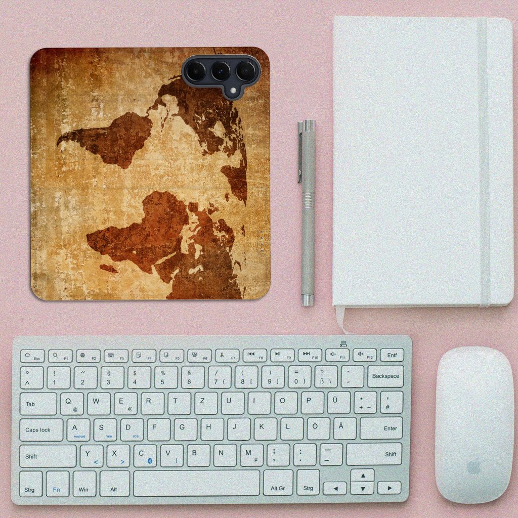 Als je een hoesje koopt met een wereldkaart, kun jij op veilige wijze met je smartphone rond de wereld reizen. Ga je zonder een boekhoesje met wereldkaart het buitenland verkennen, dan loop je veel te groot risico dat je stukken krijgt aan je smartphone. Met als gevolg dat je de belangrijke gebeurtenissen op je reis wellicht niet meer vast kunt leggen om door te sturen aan je vrienden. In het slechtste geval wordt jouw toestel zonder een smartphone hoesje met wereldkaart onbruikbaar. Wij kunnen de wereldkaart bedrukken op een stand case. Een Samsung Galaxy A55 Book Cover beschermt jouw telefoon aan alle kanten en beschikt over een 1 opbergvakje en een speciale standaard. Het hoesje wordt afgesloten met een magneet aan de binnenzijde. De houder aan de binnenzijde is van TPU. Dit stand hoesje met wereldkaart is voor een zeer laag bedrag te bestellen.