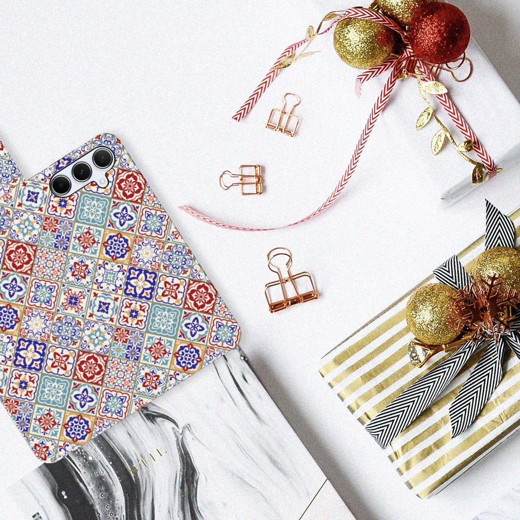 Samsung Galaxy A55 Bookcase met ruimte voor 3 pasjes Tiles Color
