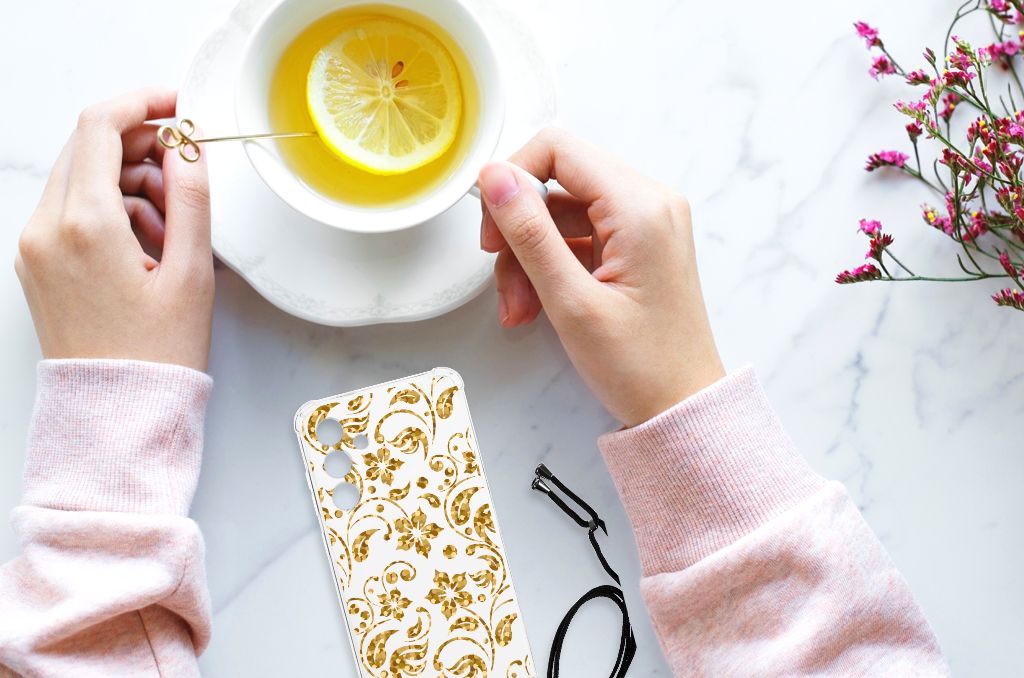 Ben je op zoek naar een uniek telefoonhoesje voor je Samsung Galaxy A55? Dan ben je bij B2C Telecom aan het juiste adres! Speciaal voor jou hebben we dit prachtige Gouden Bloemen design in onze collectie hoesjes opgenomen. Het design wordt bedrukt op een Case en is gemaakt van flexibel rubber. Het hoesje is perfect voor de actieve smartphonegebruiker door de opstaande randen/hoeken. Denk aan mensen die veel sporten, reizen of wandelen en net iets meer zekerheid willen als het op hun geliefde telefoon aankomt. Het design wordt alleen aan de bovenkant van het hoesje bedrukt en de randen blijven transparant. Aan de zijkanten zijn uitsparingen gemaakt waardoor je met gemak alle knoppen en poorten kunt bedienen. Wij adviseren om dit hoesje in combinatie met een screenprotector te gebruiken voor een langere levensduur van je telefoon. Wil je dit hoesje nog iets extra's geven? Voeg dan gratis je naam of een quote toe! Is dit design hoesje toch niet helemaal wat je zocht? Ontwerp dan zelf een hoesje in ons ontwerpprogramma.